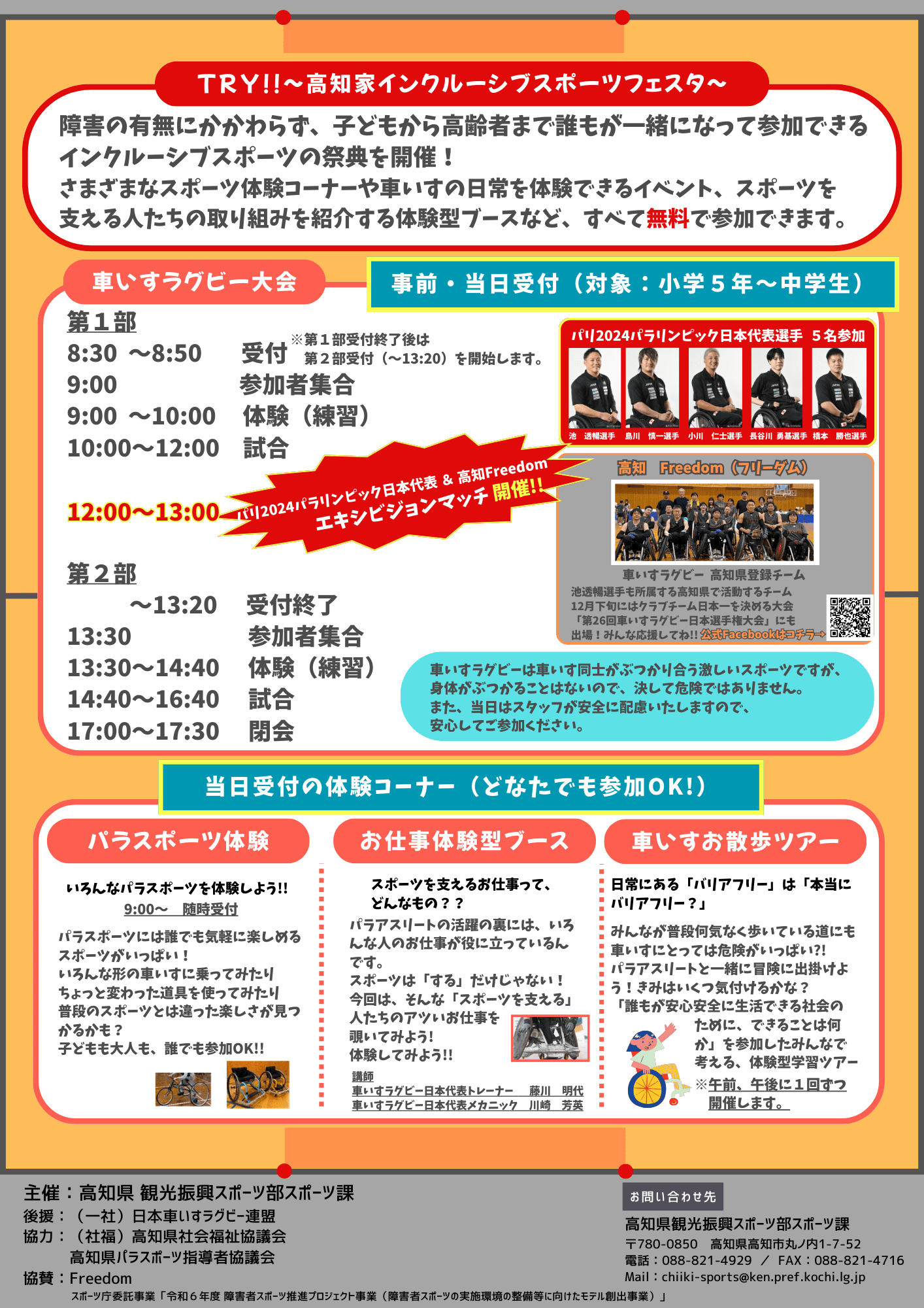 You can participate and view free of charge, such as a wheelchair rugby tournament in which Japanese national athletes participate, various sports experience corners, events where you can experience the daily life of wheelchairs, and hands-on booths introducing the efforts of people who support sports.