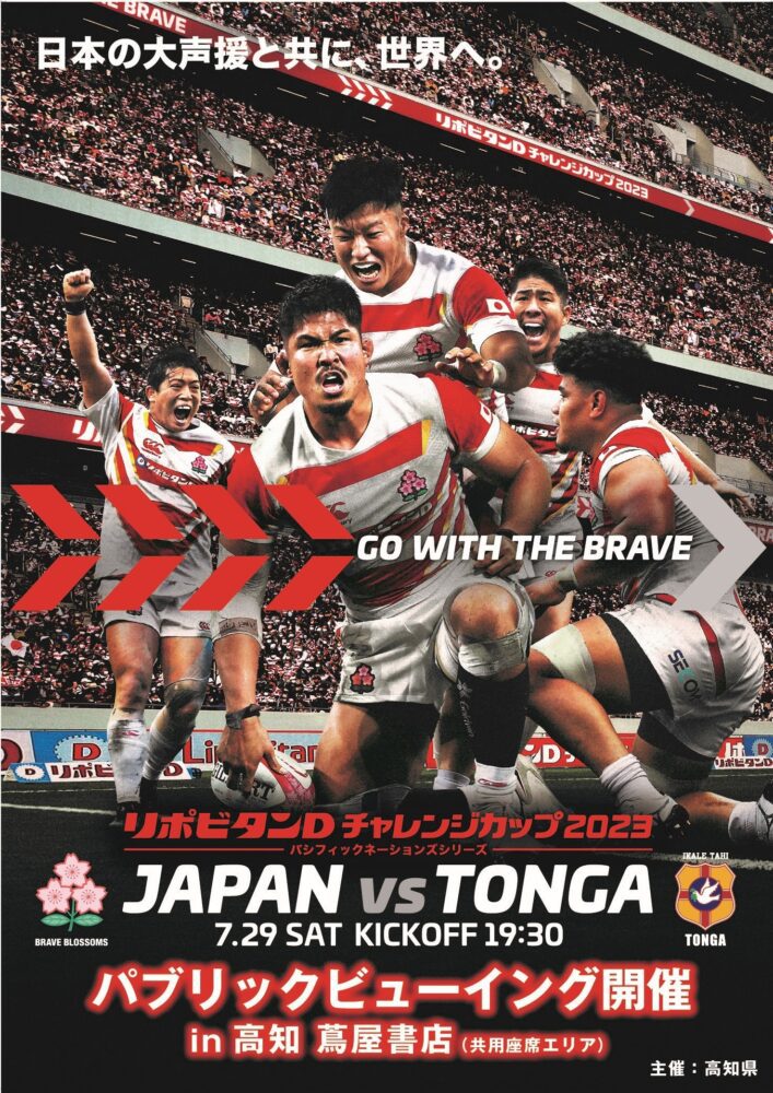 On July 29, 2023 (Saturday), a public viewing of the rugby "Japan National Team VS Tonga National Team" match (Kick-off: 19:30) will be held at Kochi Tsutaya Bookstore (Minami-Oza, Kochi City).