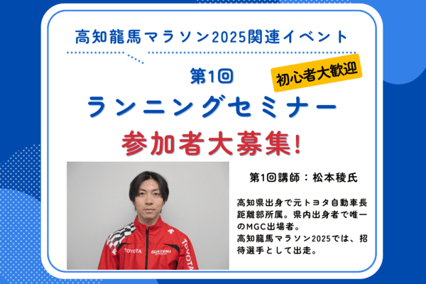 As an event related to the Kochi Ryoma Marathon 2025, we will hold a total of 10 consecutive running seminars from beginners interested in running to intermediates who want to shorten their time. Including Mr. Tetsuhiko Kin, advisor of the Kochi Ryoma Marathon 2025 tournament, … Read more [Kochi Ryoma Marathon 2025 Related Event] The 1st Running Seminar