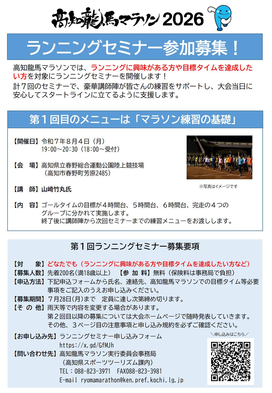 Recruitment of Kochi Ryoma Marathon 2026 1st running seminar participants!