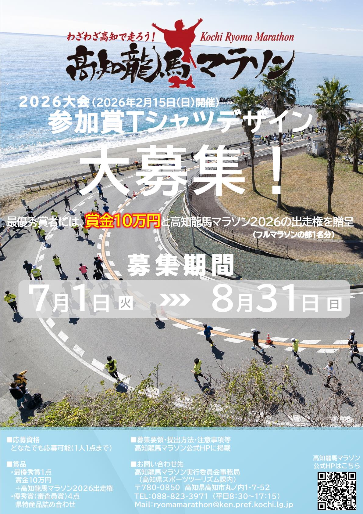 In order to excite the Kochi Ryoma Marathon 2026 with everyone, we are looking for T-shirt designs for the tournament participation prize.