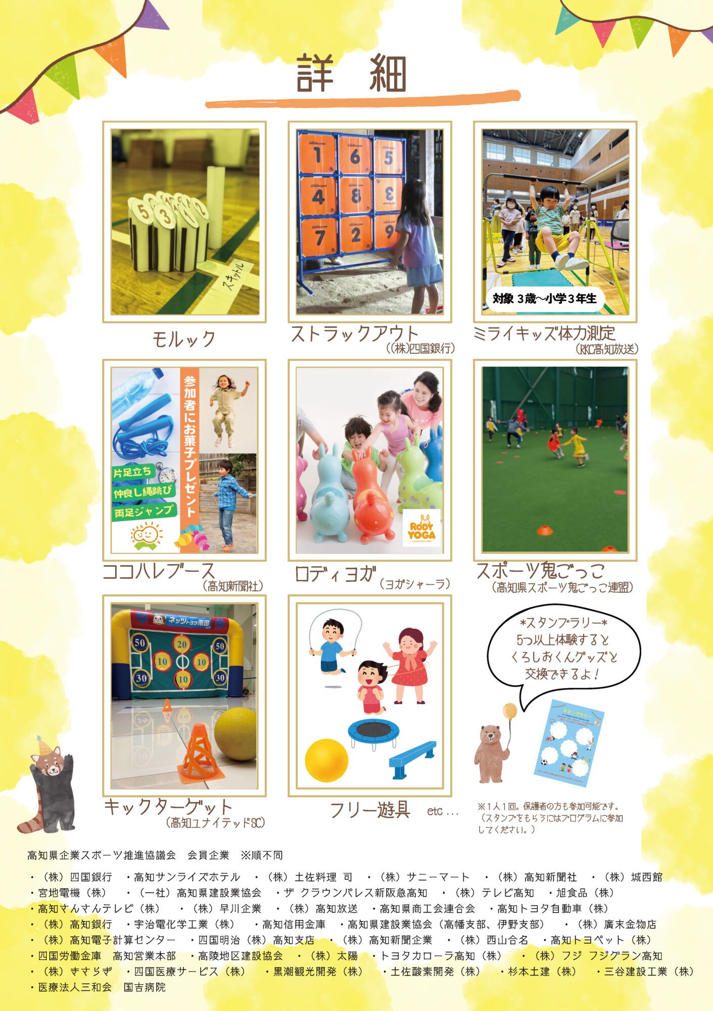 The Kochi Prefectural Corporate Sports Promotion Council is a council composed of private companies in the prefecture with the aim of creating an environment where children and young people who will lead the future of Kochi Prefecture can get acquainted with sports.
