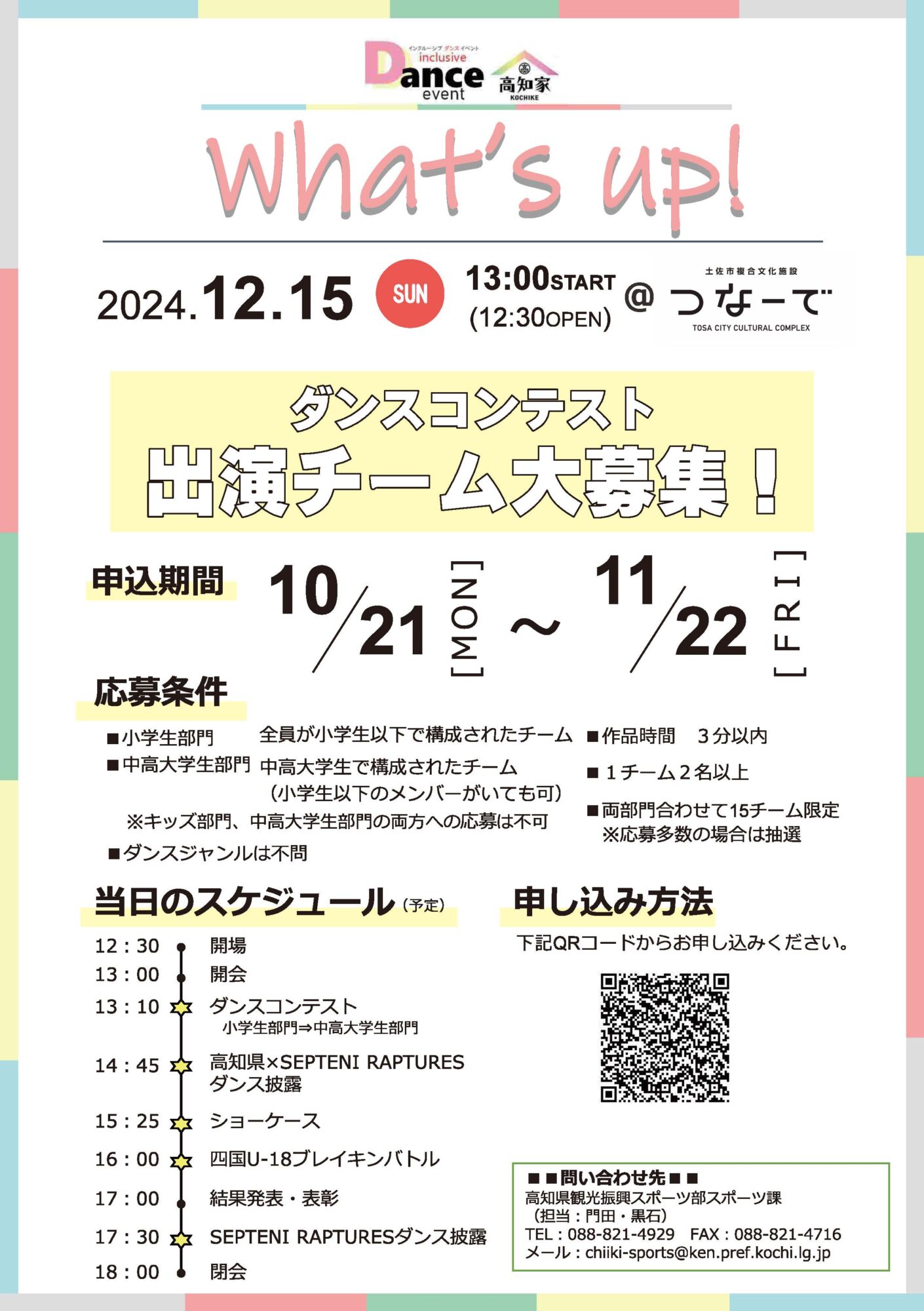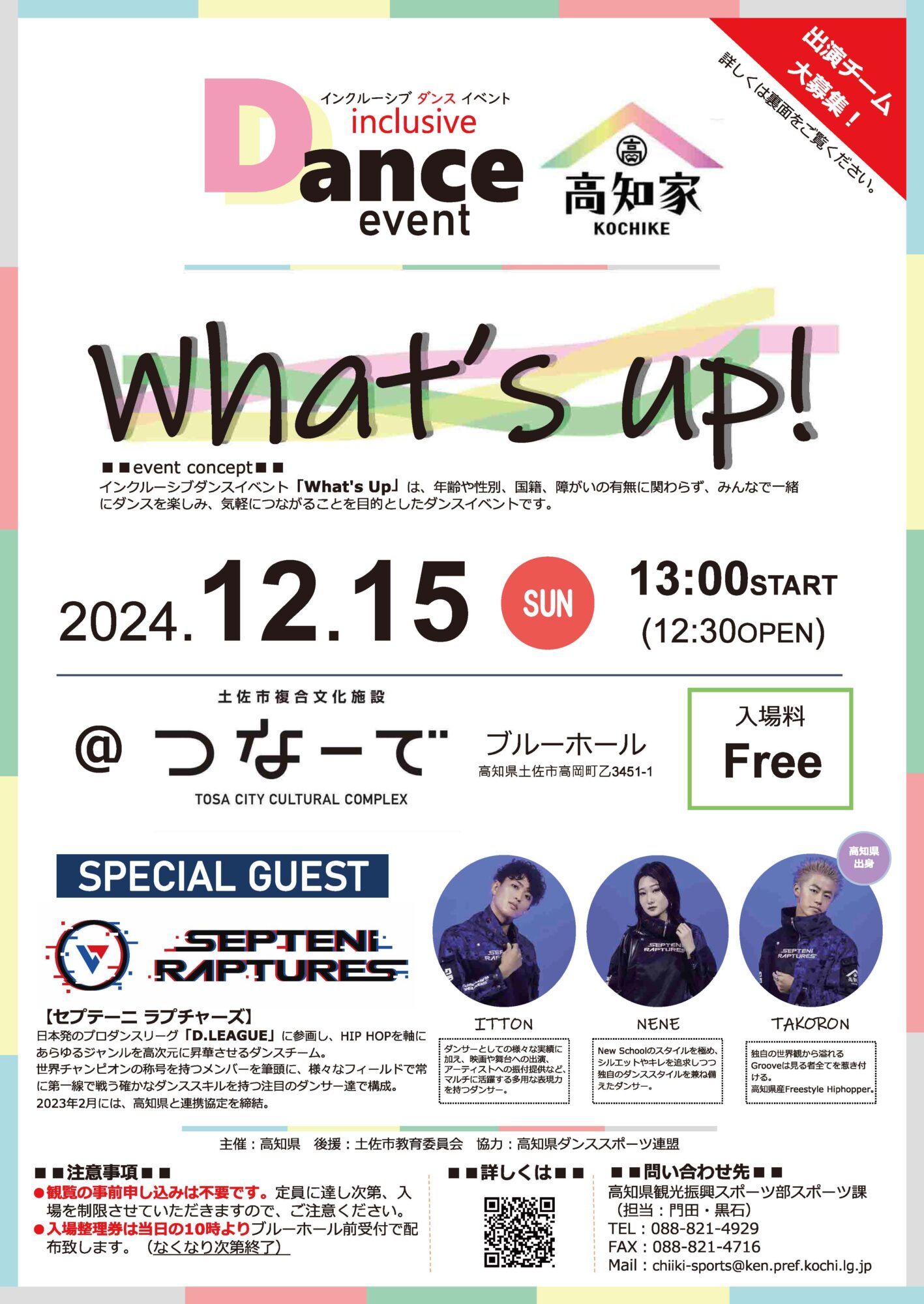 The inclusive dance event "What's Up" is a dance event aimed at realizing a symbiotic society where diverse people, regardless of age, gender, nationality, or physical and mental disabilities, can enjoy dancing together and feel free to connect.