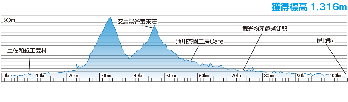Ino Station > Tosa Washi Craft Village > Yasui Valley Horai-so > Sightseeing Bussankan Ochi Station > Ino Station
