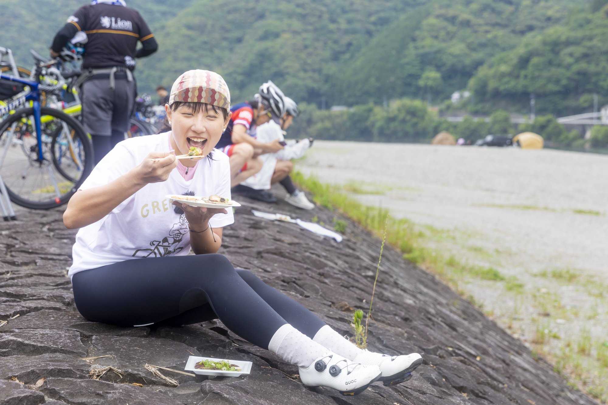 "The Niyodo River is very beautiful. The course is very easy with few slopes. Unfortunately it's cloudy today, but it's just right for a cyclist (laughs). It’s cool and easy to run.”