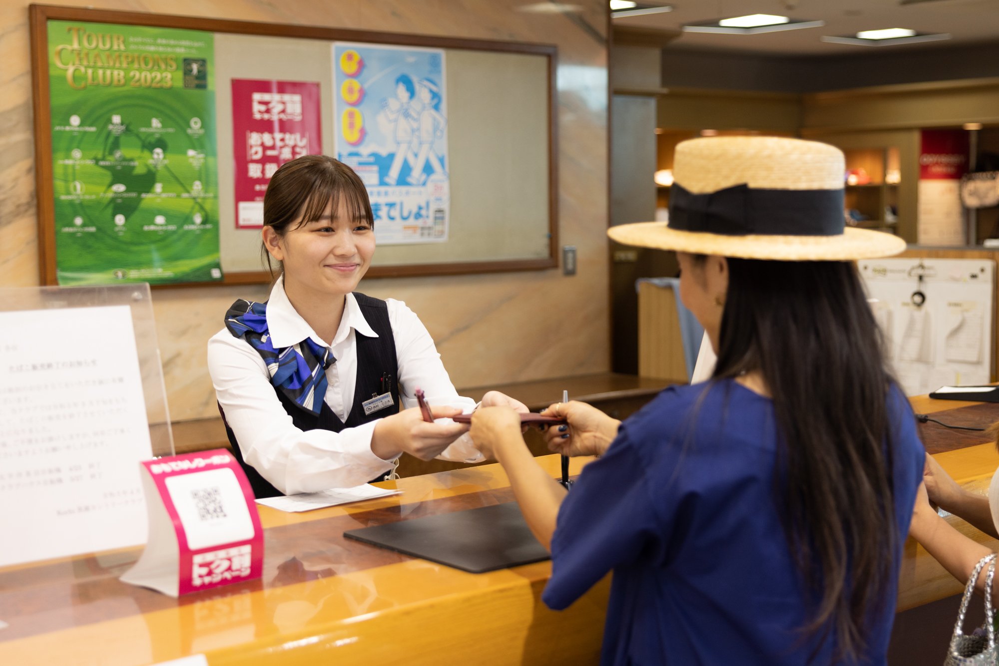 When you arrive at the golf course, you can complete the reception at the front desk and receive the locker folder. Let's change clothes in the locker room and start playing.