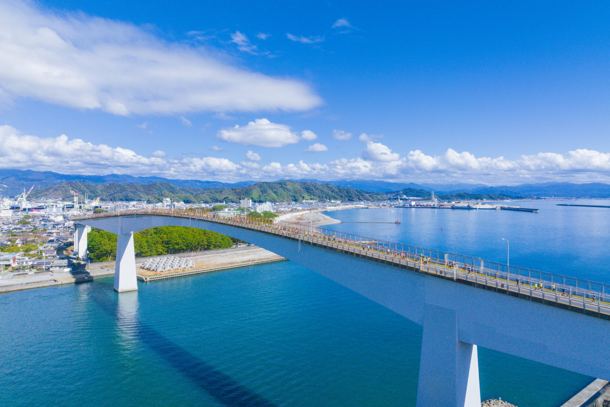 At the middle point, Urado-ohashi Bridge with a height difference of 50m, which is the biggest difficulty, is waiting for runners.