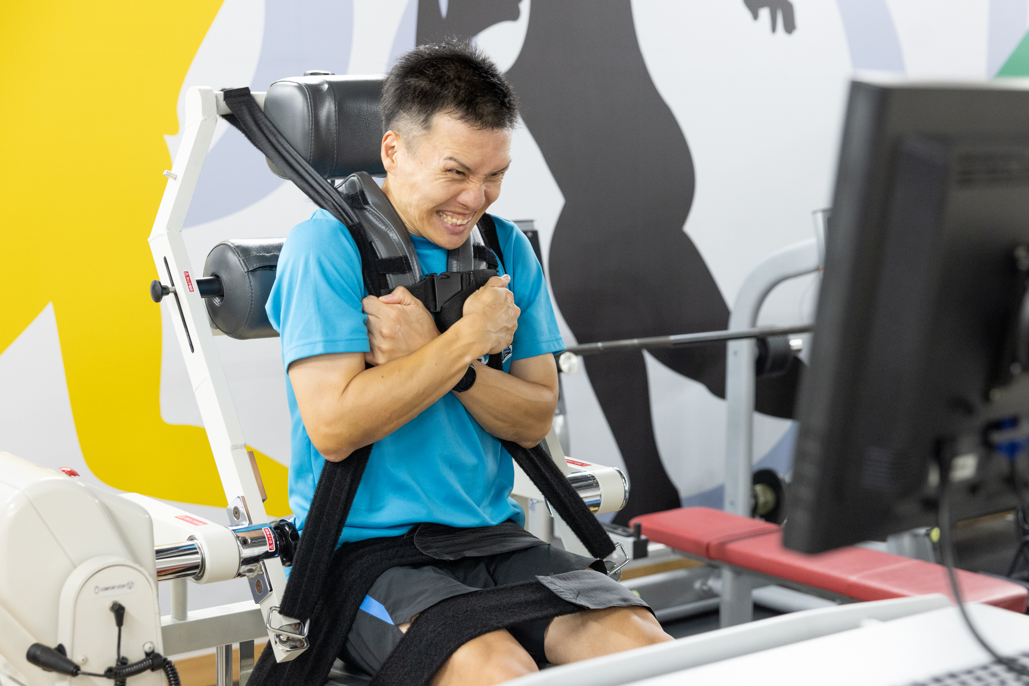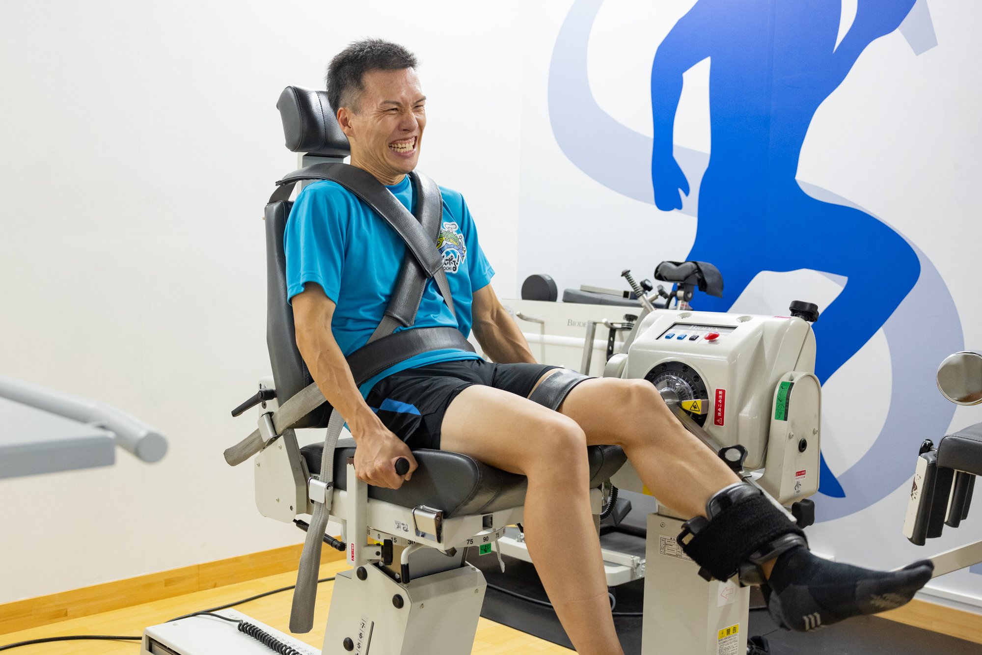 Next, we performed an equal-speed muscle strength measurement to measure leg strength and trunk muscle strength ratio.
