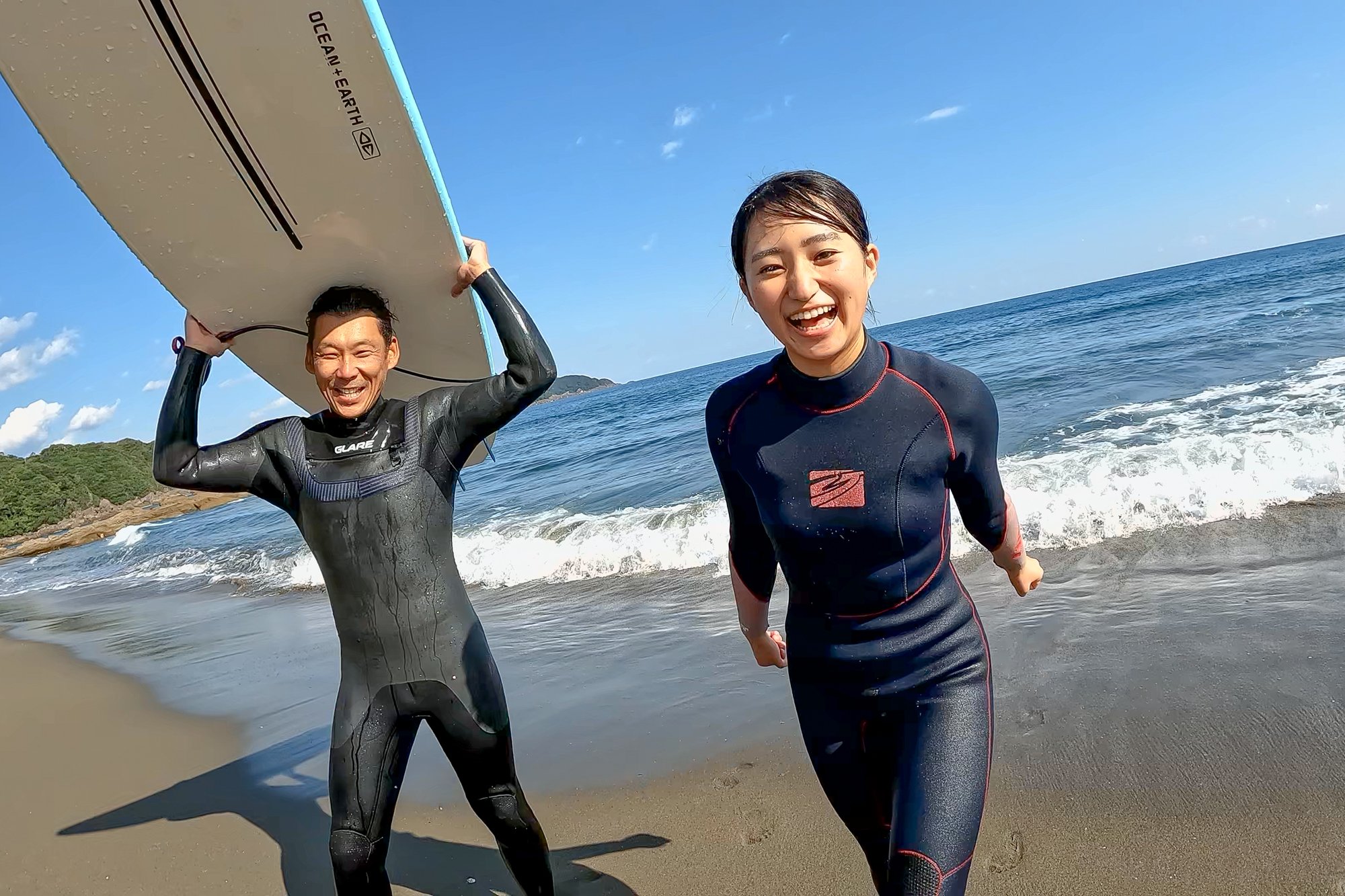 Mr. Ikeda, who was born in Osaka Prefecture and came to Kochi Prefecture to study at university, experienced surfing in Kochi throughout the year on the Ikumi, Toyo-cho coast.