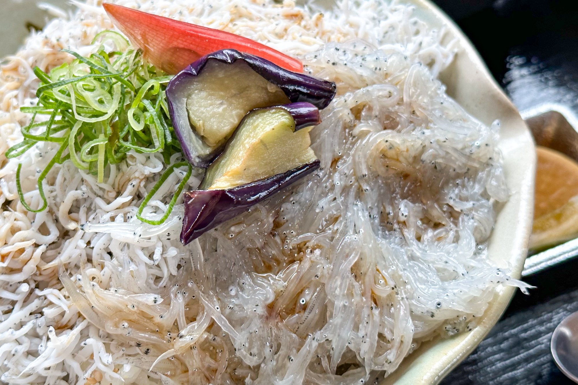 Shirasu bowl is topped with ingredients from Aki, such as eggplant, myoga, and fragrant and rare "Misho Yuzu", so you can enjoy delicious Aki with one bowl.
