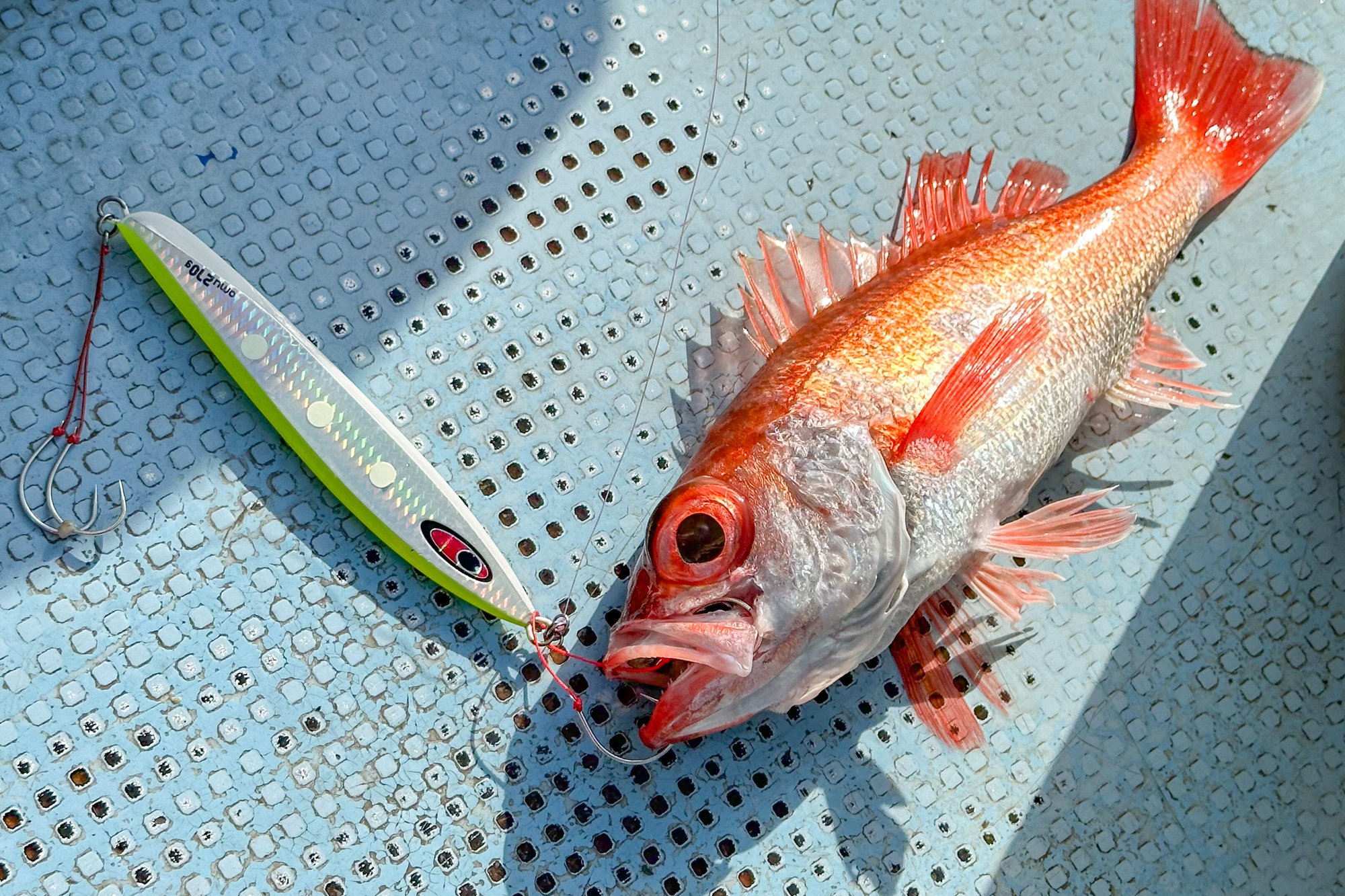 By the way, jigging is a way of fishing that aims at fish with a device with a needle attached to a pseudo-bait made of metal called metal jigs. It has become popular in recent years as a very deep fishing that can aim for various fish.