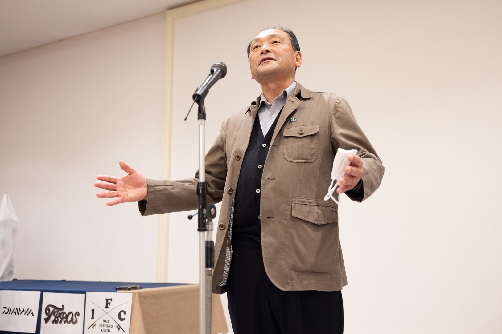 "Today, many people from afar, from Aomori in the north to Miyazaki in the south, participated in the tournament, and we were able to hold it grandly. Thank you very much for your cooperation. Congratulations on the fishing again. Muroto City has a valuable terrain that has been certified as a UNESCO Geopark. From the national highway, you can see the rare earth, mountains, and sea. Depending on the weather, the color and brightness of the mountains and seas look completely different. The throat that everyone enjoys today is a fish unique to Muroto, which has the deep sea near the coast of Japan. By all means, I would like to continue this tournament with the 3rd and 4th sessions in the future, making it a bigger and bigger tournament. We look forward to your continued support. 」