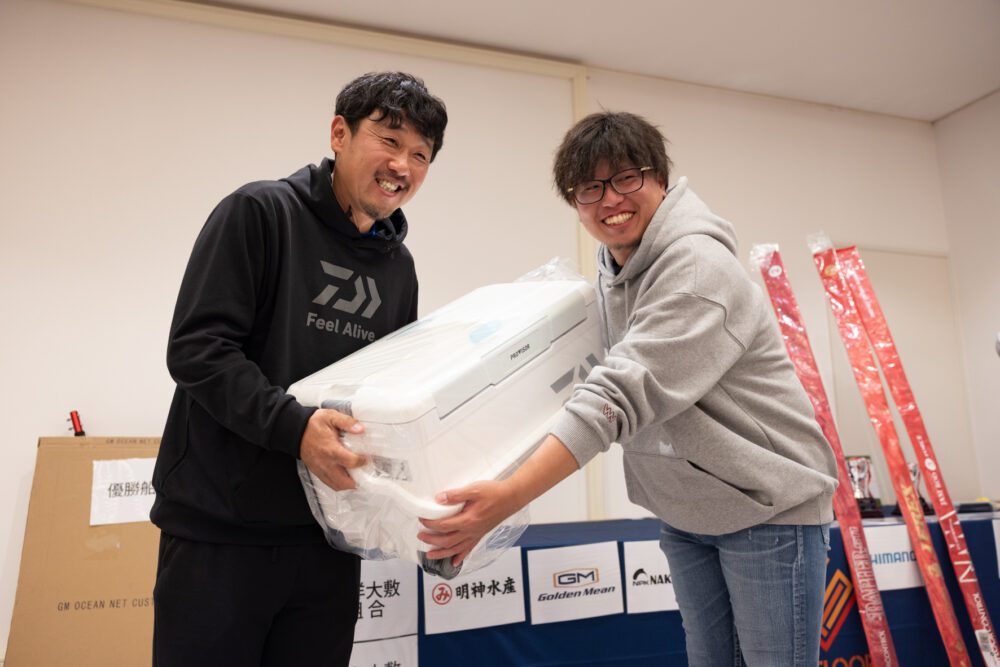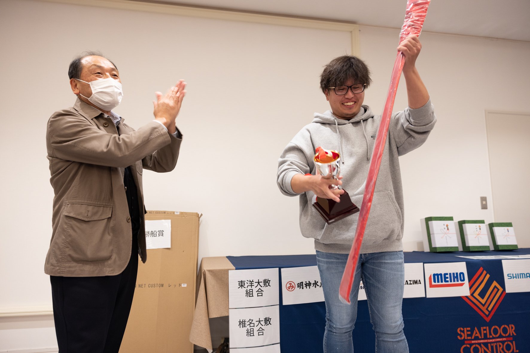 At the following awards ceremony, the 5th to 1st place were announced after the announcement of the multi-fish category and the Captain's Award. Mr. Yokota, who participated from Kochi City, won the championship in a mixed battle of only 50g from 4th place to 1st place.