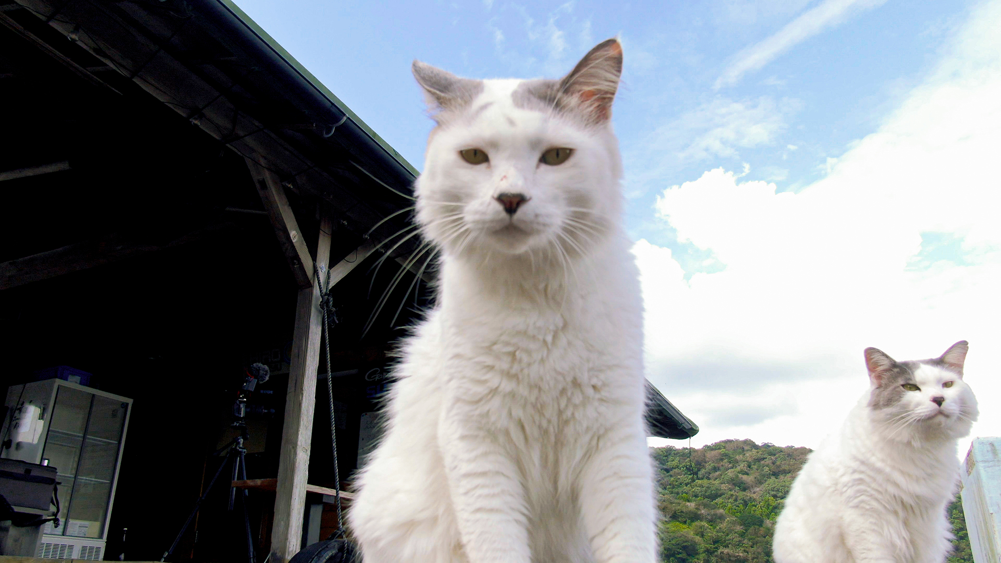 At the fishing pond, a cat with a fluffy hair greeted me. It seemed to be used to people, and it was very cute that I was lying down while showing my stomach!