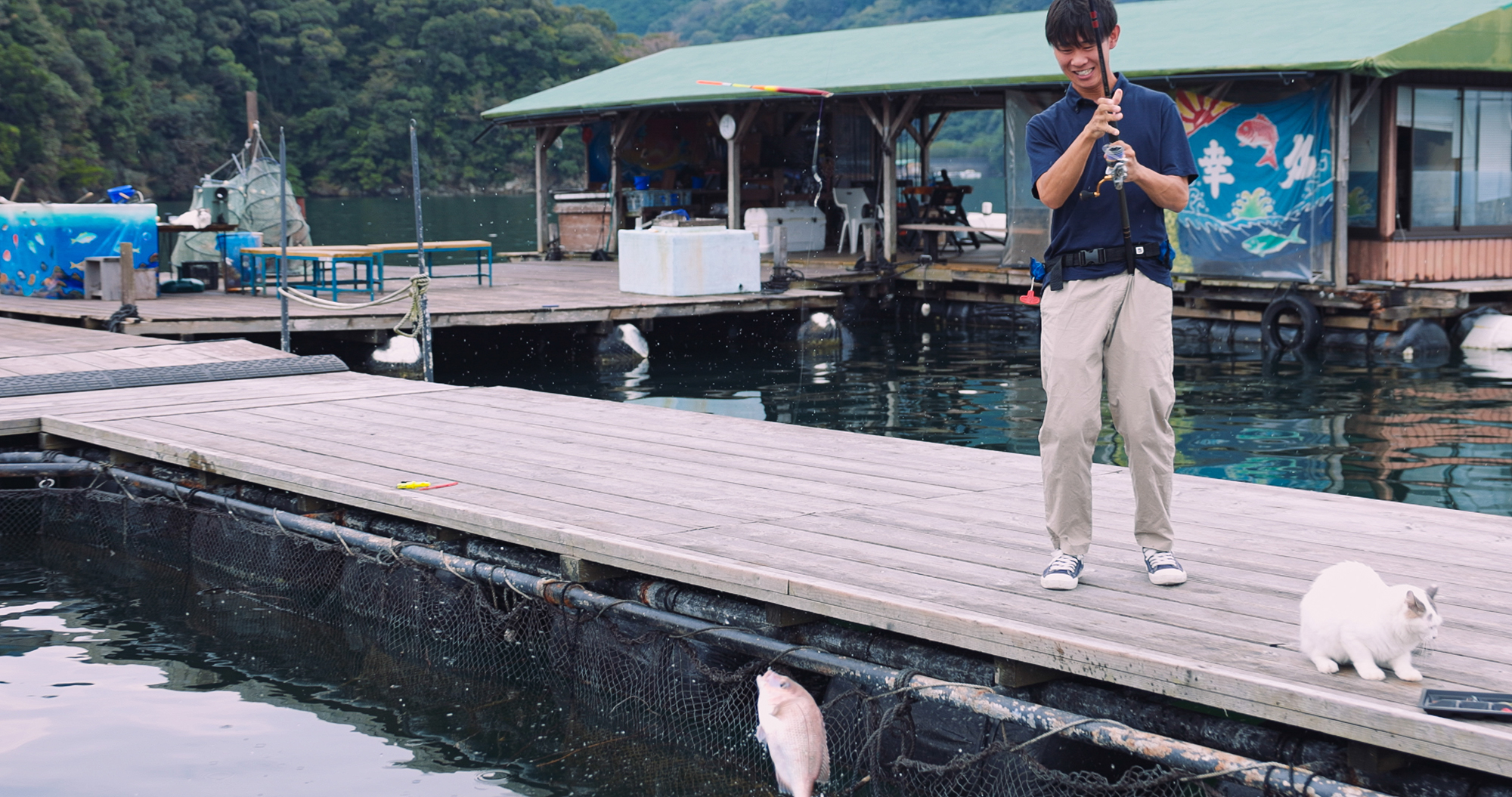 The place I experienced was Susaki City, located in central Kochi Prefecture. You will experience marine fishing at the sea fishing pond "Sachimaru" in Uranouchi Bay, where the waves are calm.