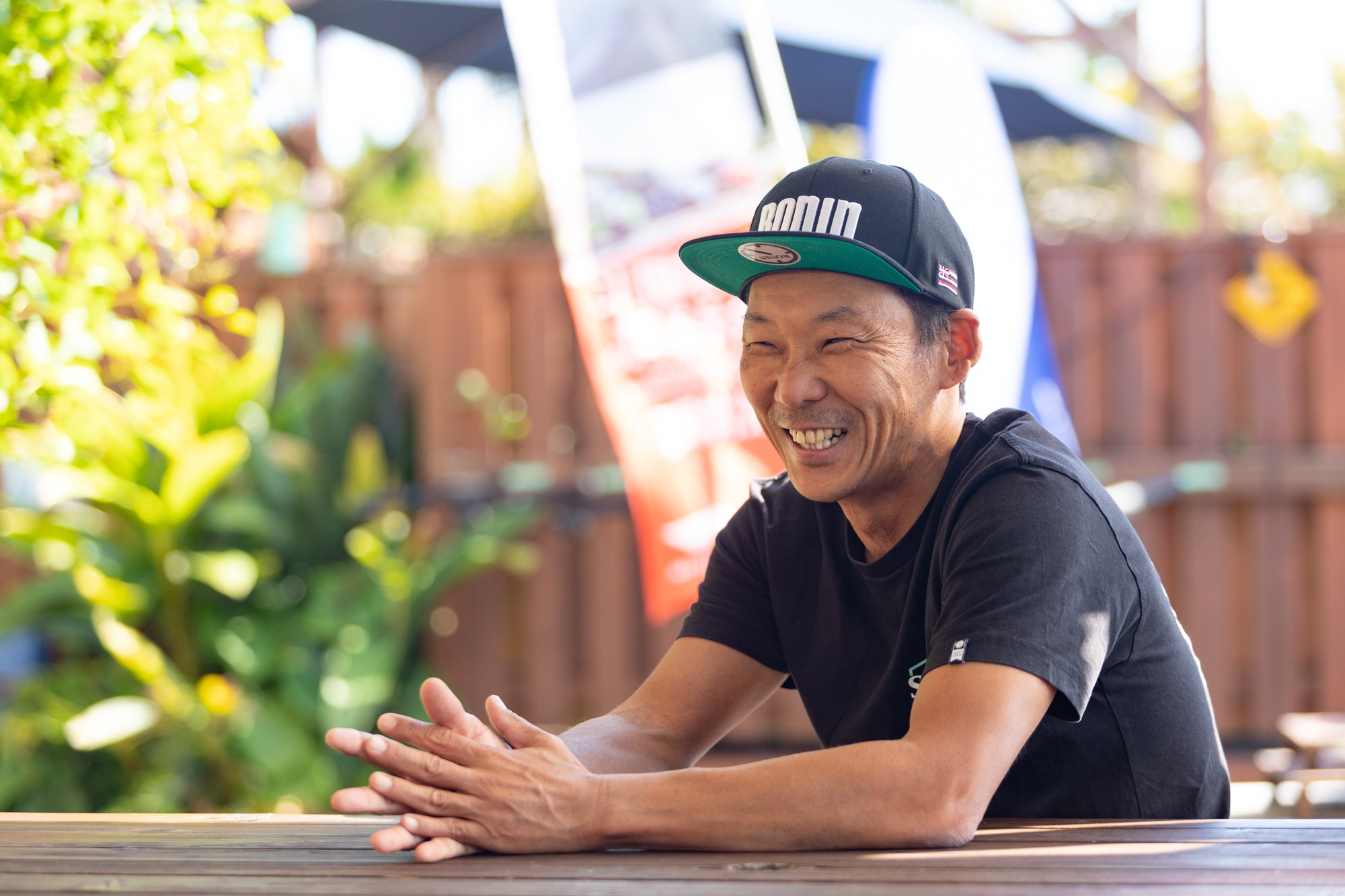 Kanazawa, who is a top surf amateur and is also active as a contestant, is also a lecturer at a surf school held at his own pension "South Shore". Mr. Kanazawa met surfing when he was a first-year high school student. "I got on the waves for the first time on the Ikumi coast that my cousin brought me, and I was fully immersed in the exhilaration and enjoyment." For the next three years, he traveled between Osaka and Kochi to balance learning and surfing.