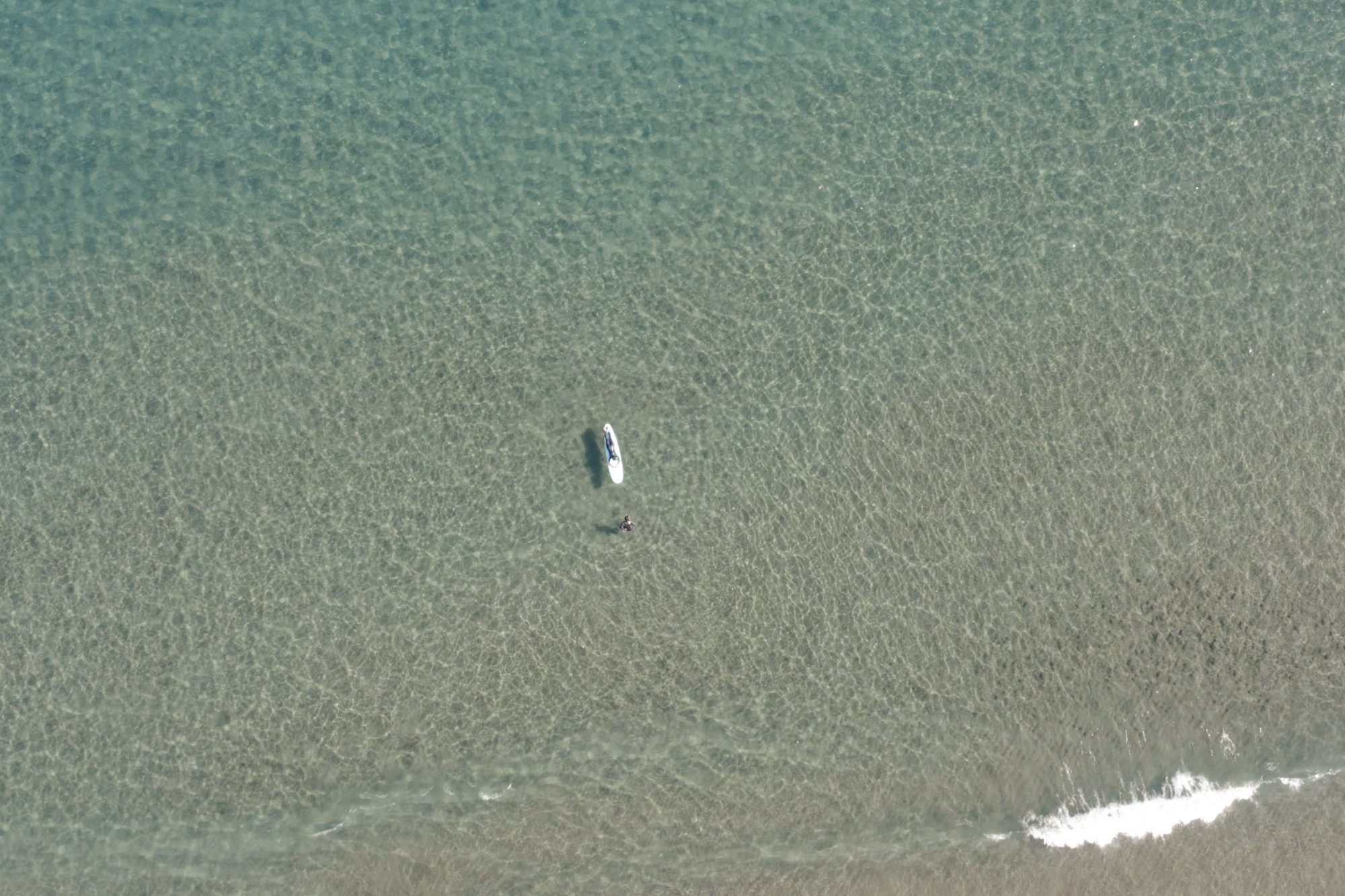 When you come near the sandy beach, get off the soft board and row the board by hand to the point where you started. And wait for the waves again.