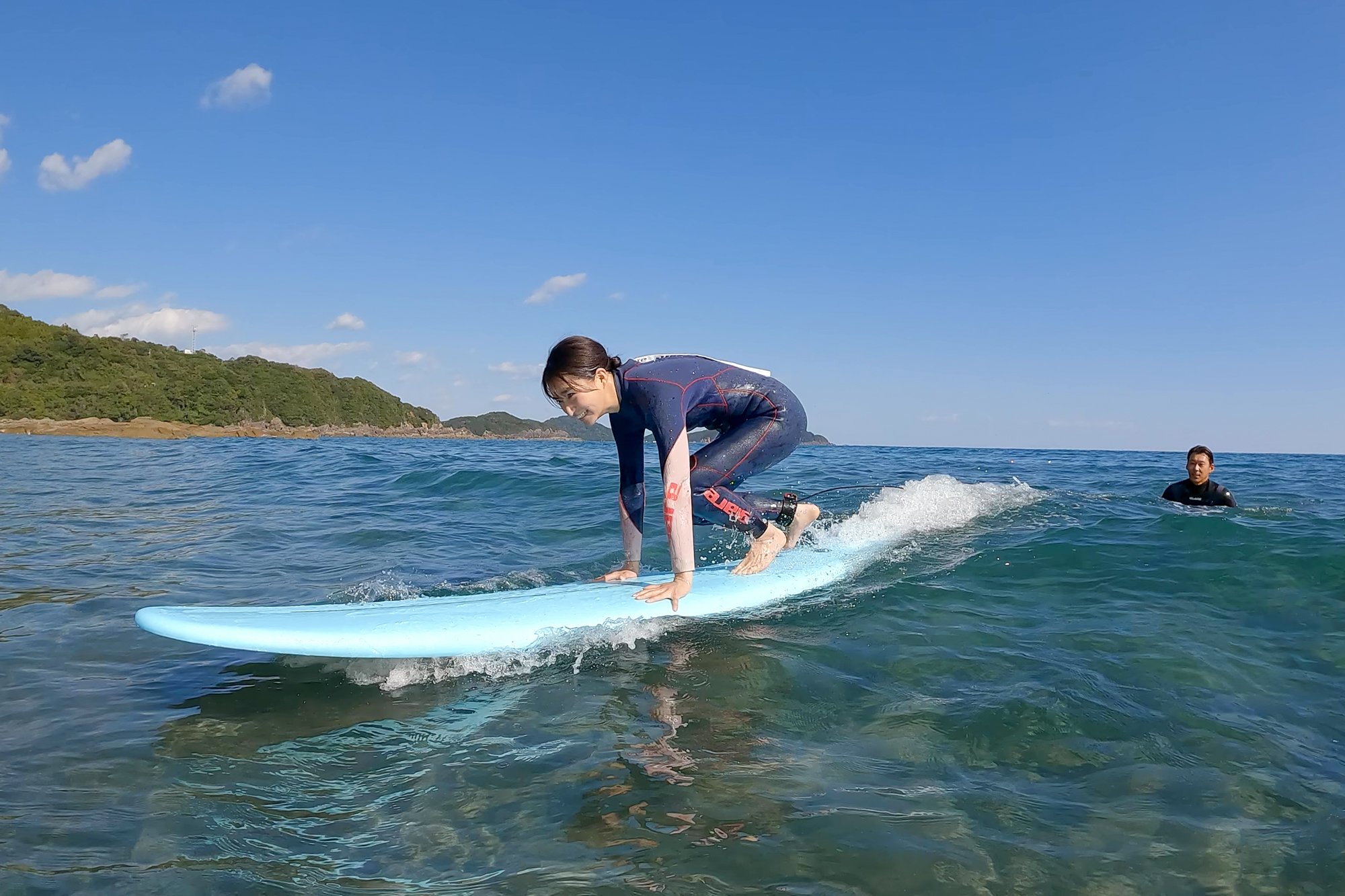 This time it is a surfing experience. First of all, create a system on the board according to the instructions of the instructor, and grasp the feeling of riding the waves.