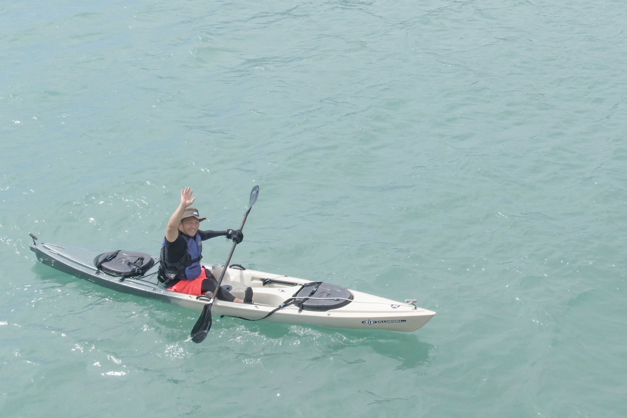 The kayak carrying Mr. Ike was lifted by four staff members and landed, and traveled to the sea gently. As expected, it is the first kayak that is an athlete, but it moves smoothly through the bay without overturning.