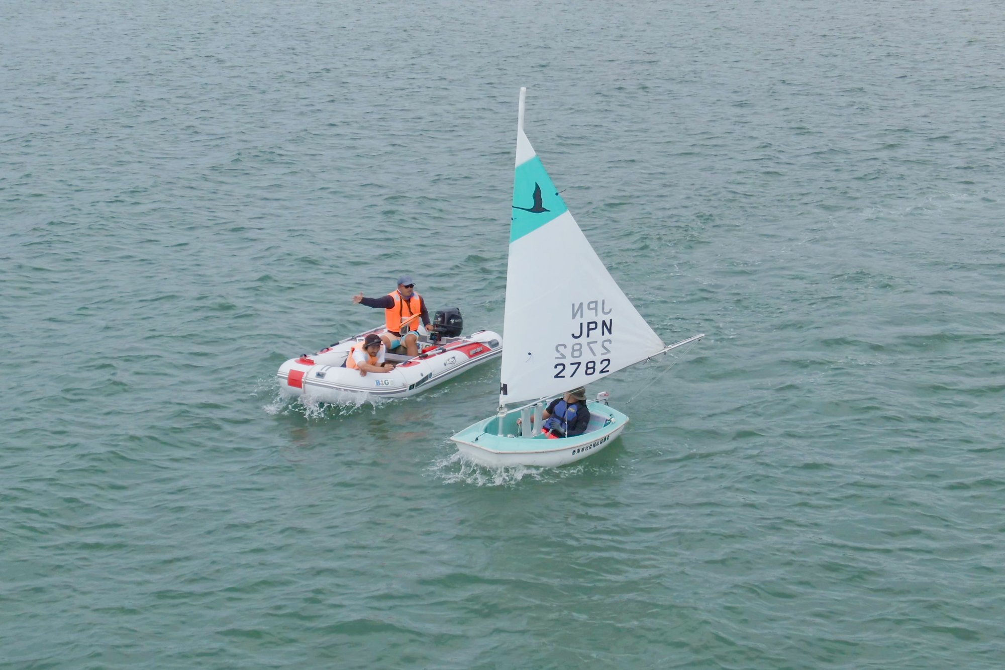 I boarded a small yacht for beginners, and four staff members lifted it up to the sea. The staff will teach you how to operate and move it exactly as it moves forward.
