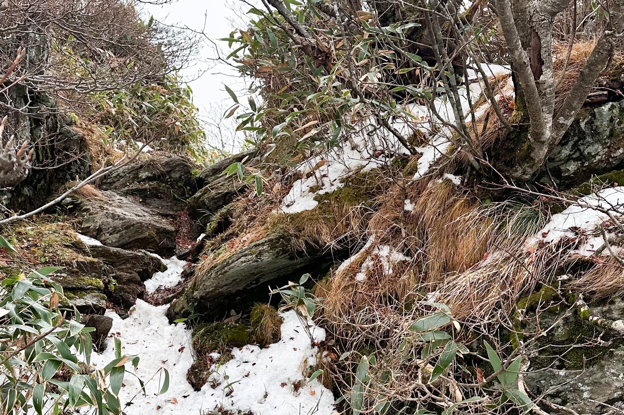 We arrive at the peak of Otokoyama. You should aim for the summit of Mt. Mezan, so you move quickly. There is a lot of snow on the north side of the mountain.
