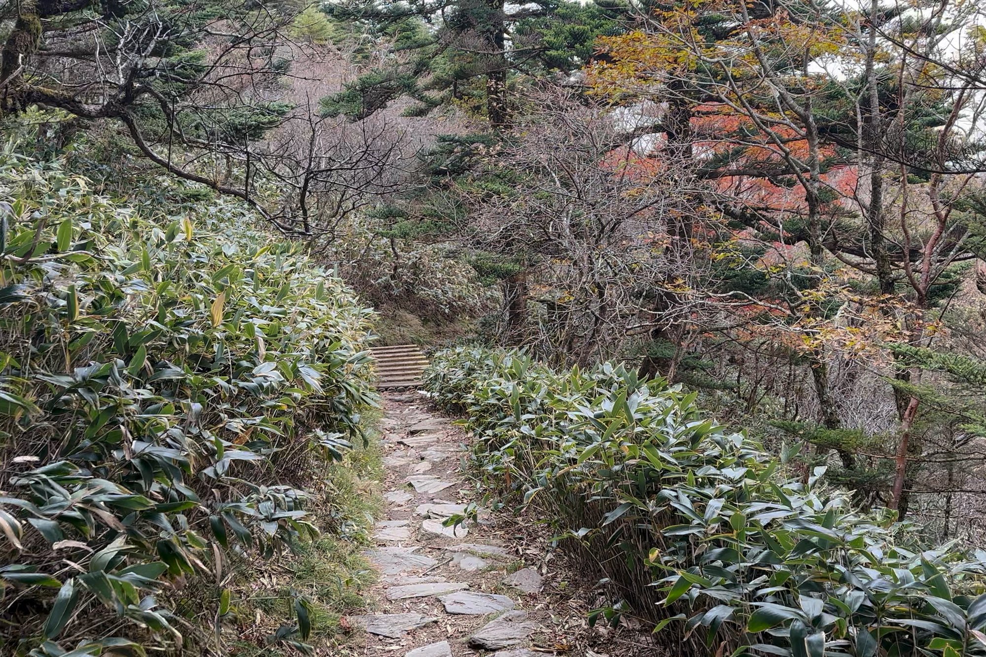 You will descend while watching the scenery spread like a carpet laid with "Kumazasa".