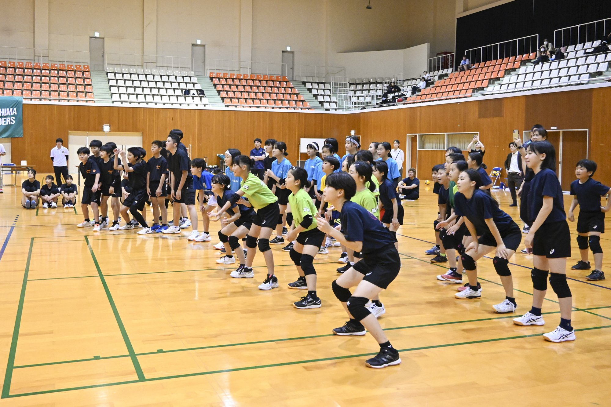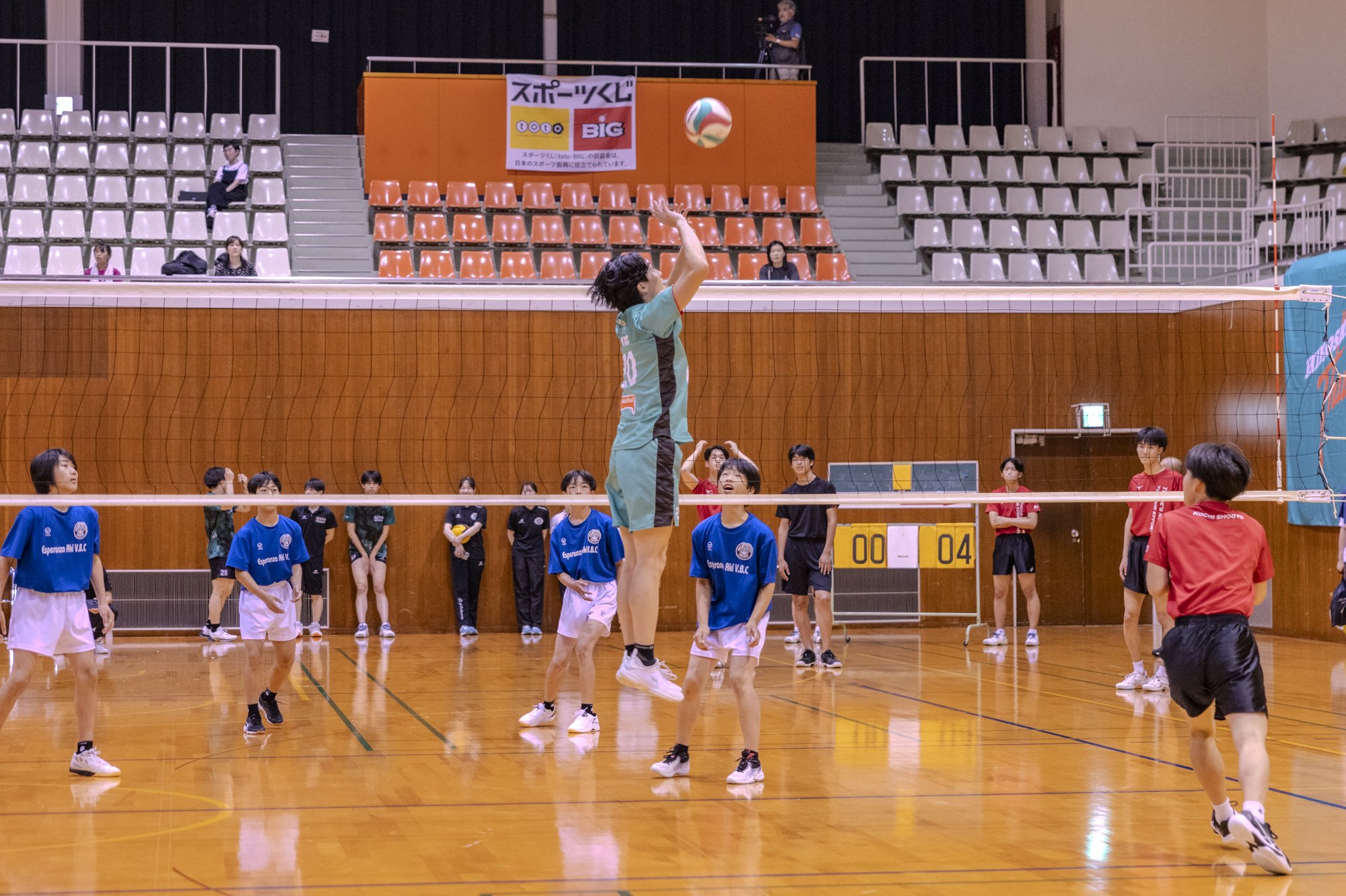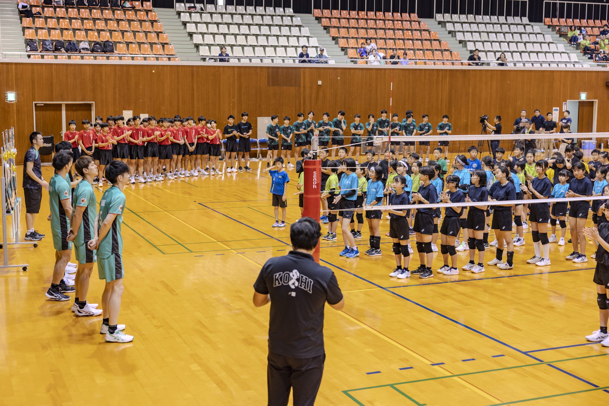 On June 21, 2025, 94 elementary and junior high school students from the prefecture gathered at the main stadium of the Kochi Prefectural Gymnasium. A volleyball class was held with four players from the professional volleyball team "Hiroshima Sanders".