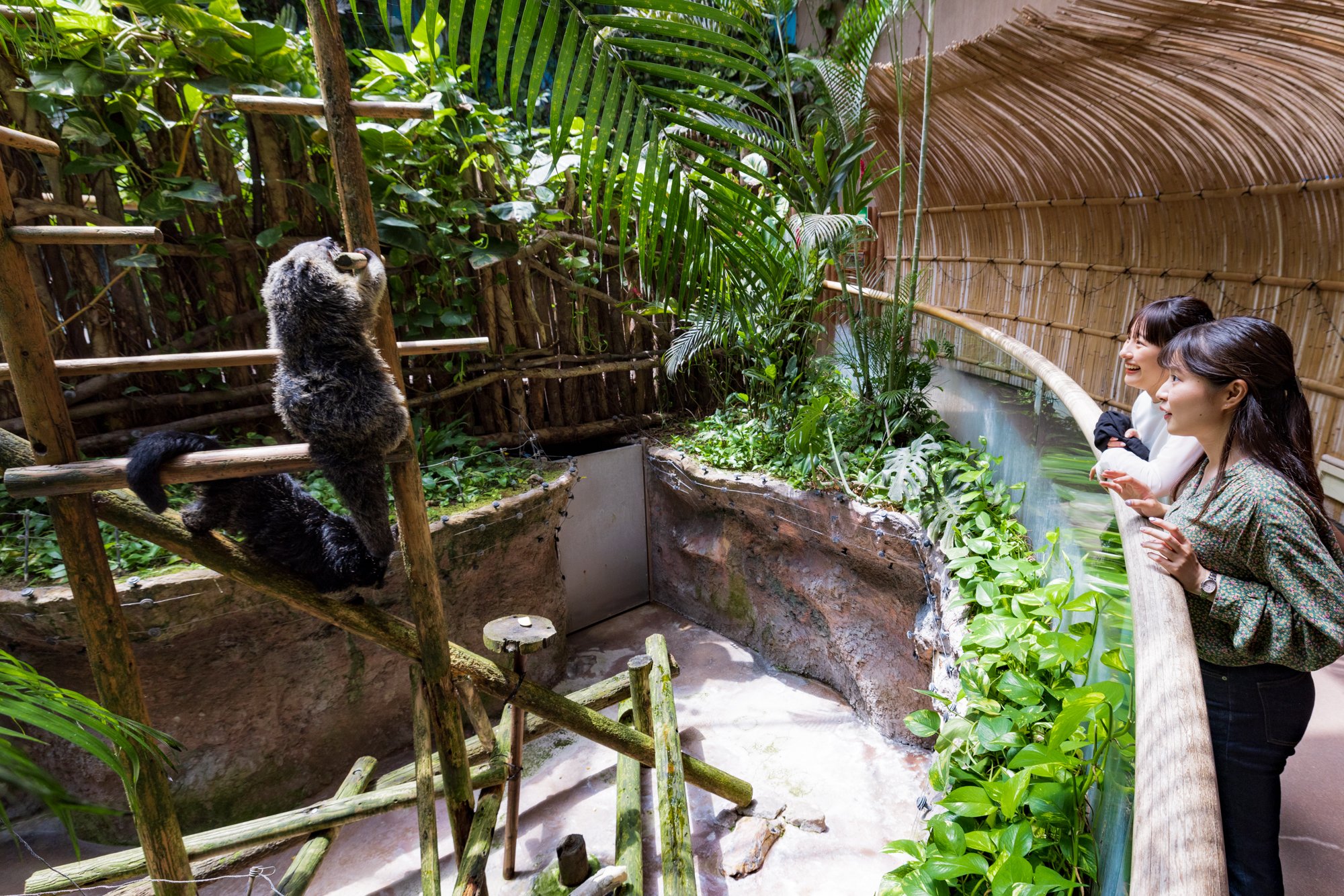 This is the largest tropical rain forest building in Japan. reptile and fish, as well as rare animals from Central and South America and Southeast Asia are on display.