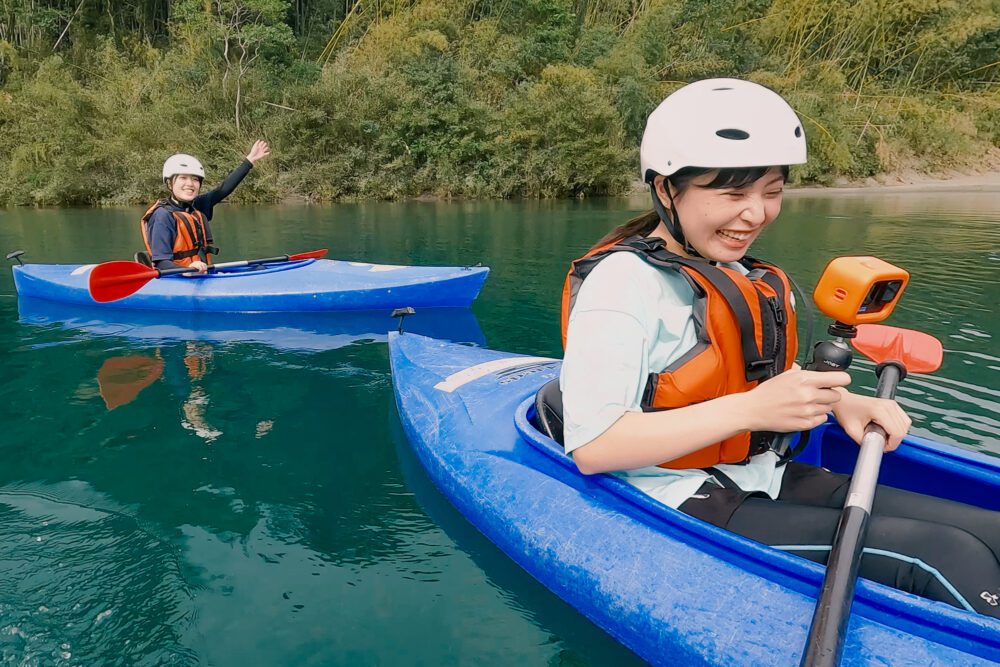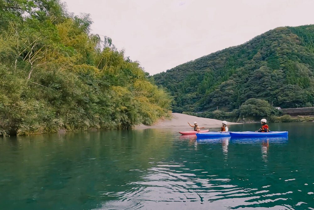 This time, two graduate students from Kumamoto Prefecture, Takezawa, and Akiyama, a university student from Chiba Prefecture, will experience this time. Currently, they live in Kochi, but this is the first time they have a canoe experience on the Niyodo River. The Niyodo River is so clear that it looks blue when it is illuminated by sunlight. How was your first canoe experience? Let me tell you about the experience of both of you.
