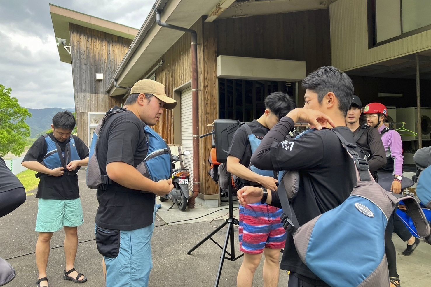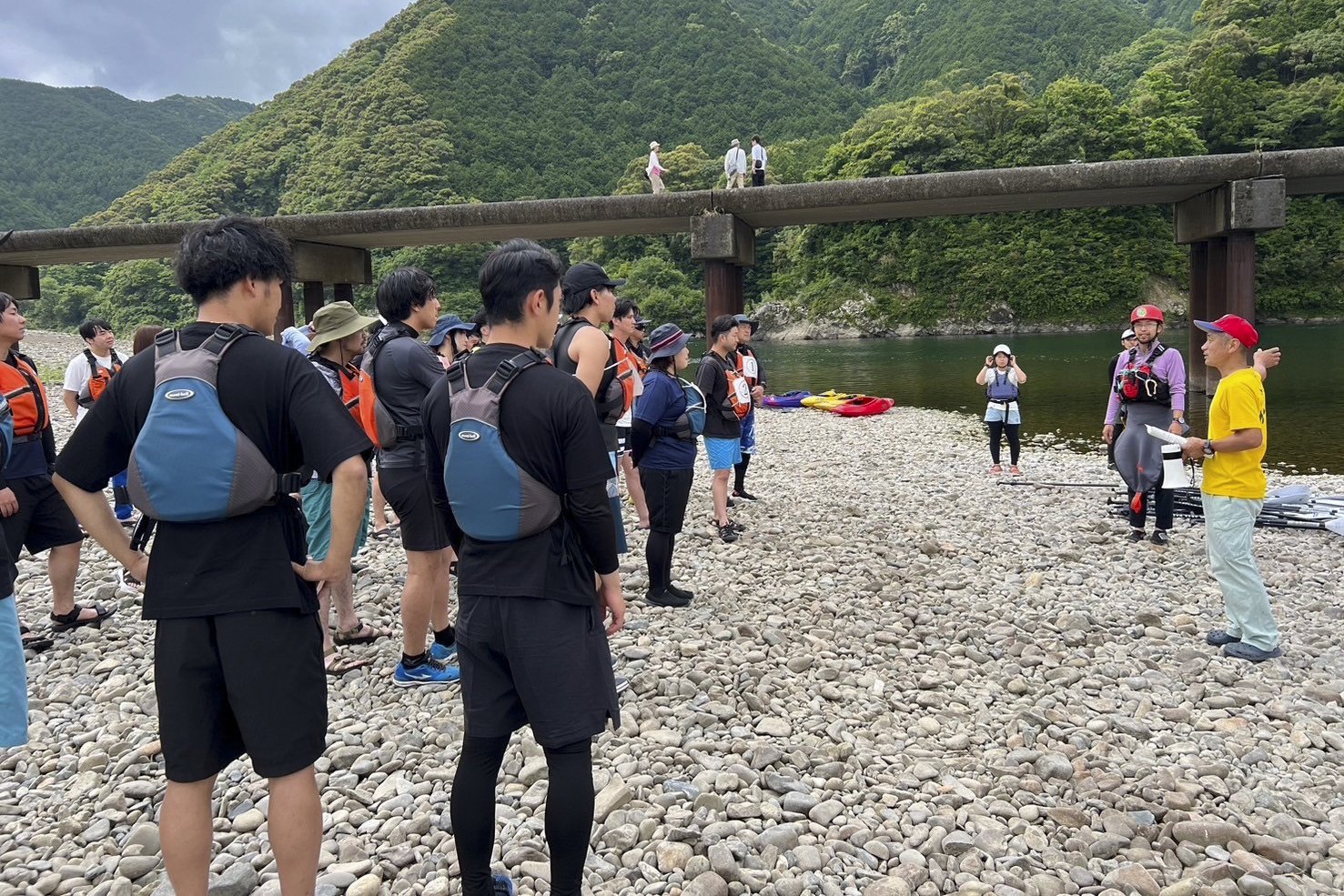 Wearing a life jacket, members of all five teams were shaken by bus along the road along the Shimanto River for about 5 minutes and arrived at the starting point upstream.