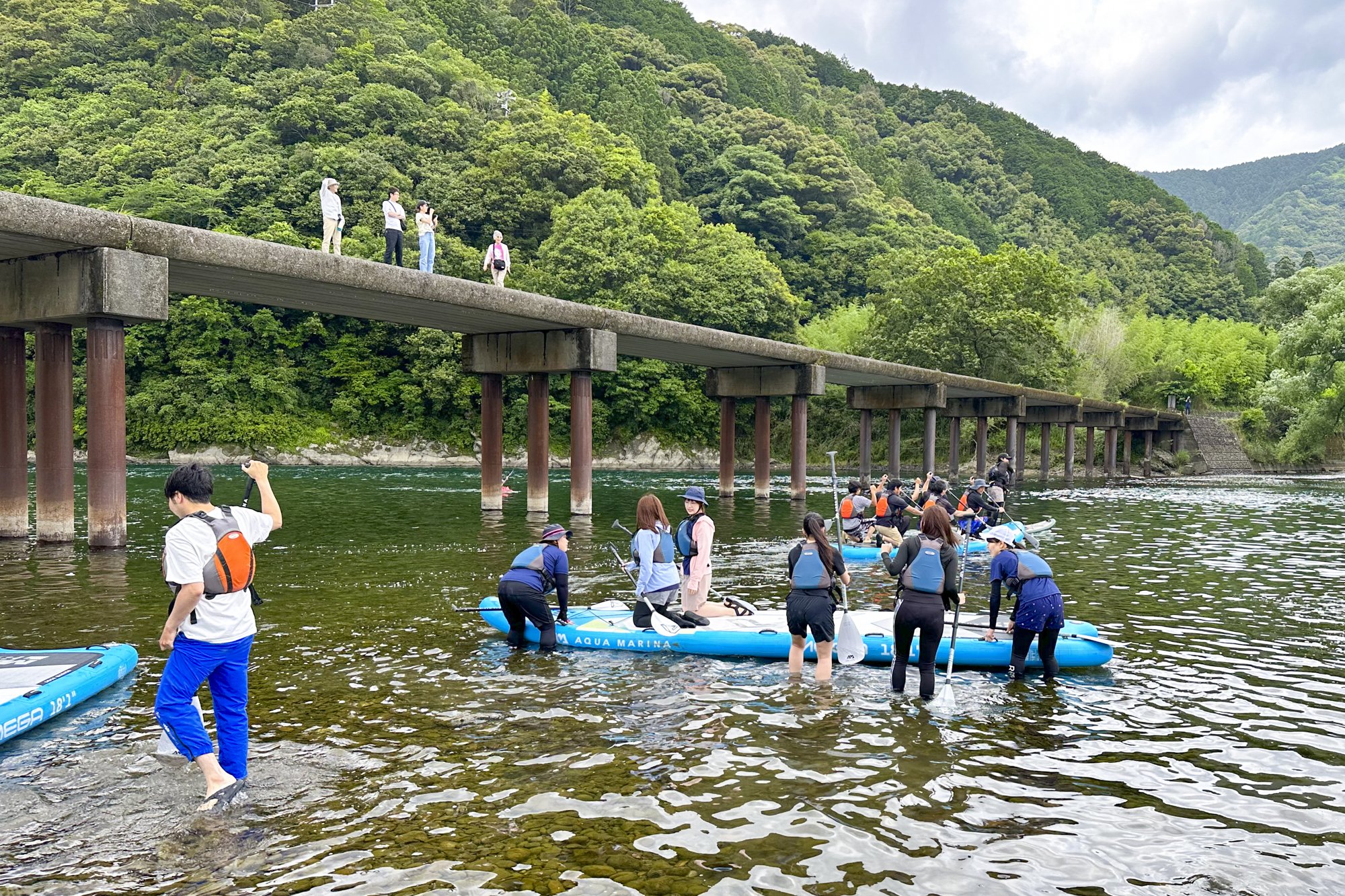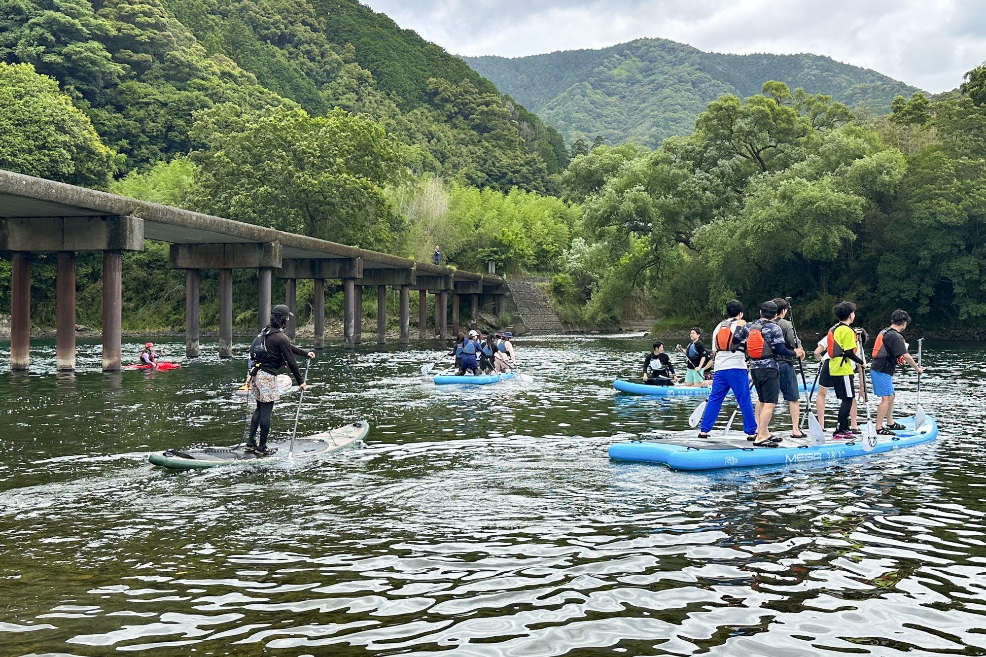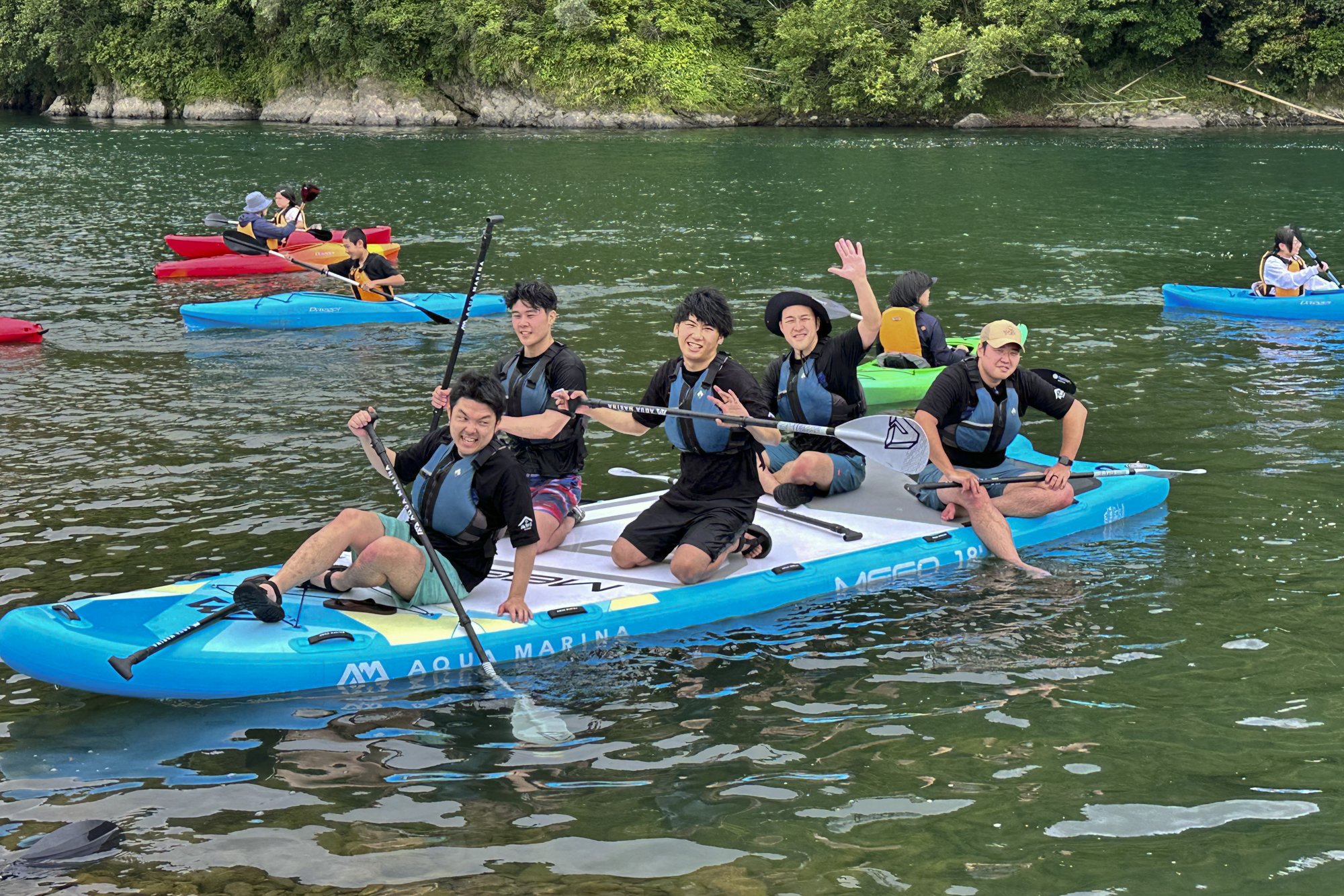 The team participating in the mega-sup race in Shimanto River challenges! Results and how