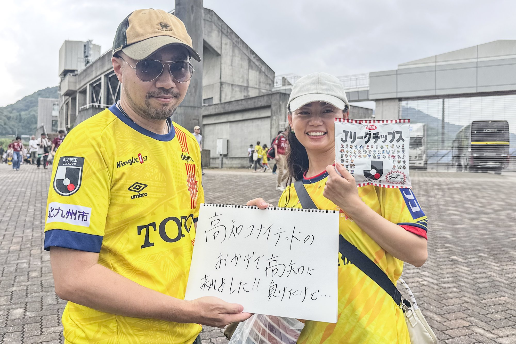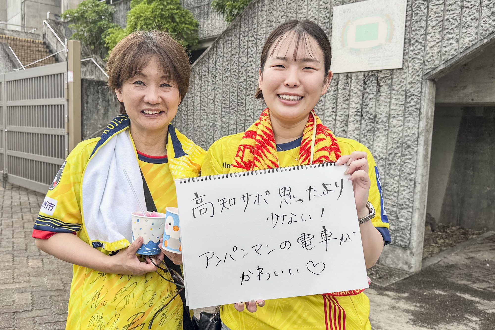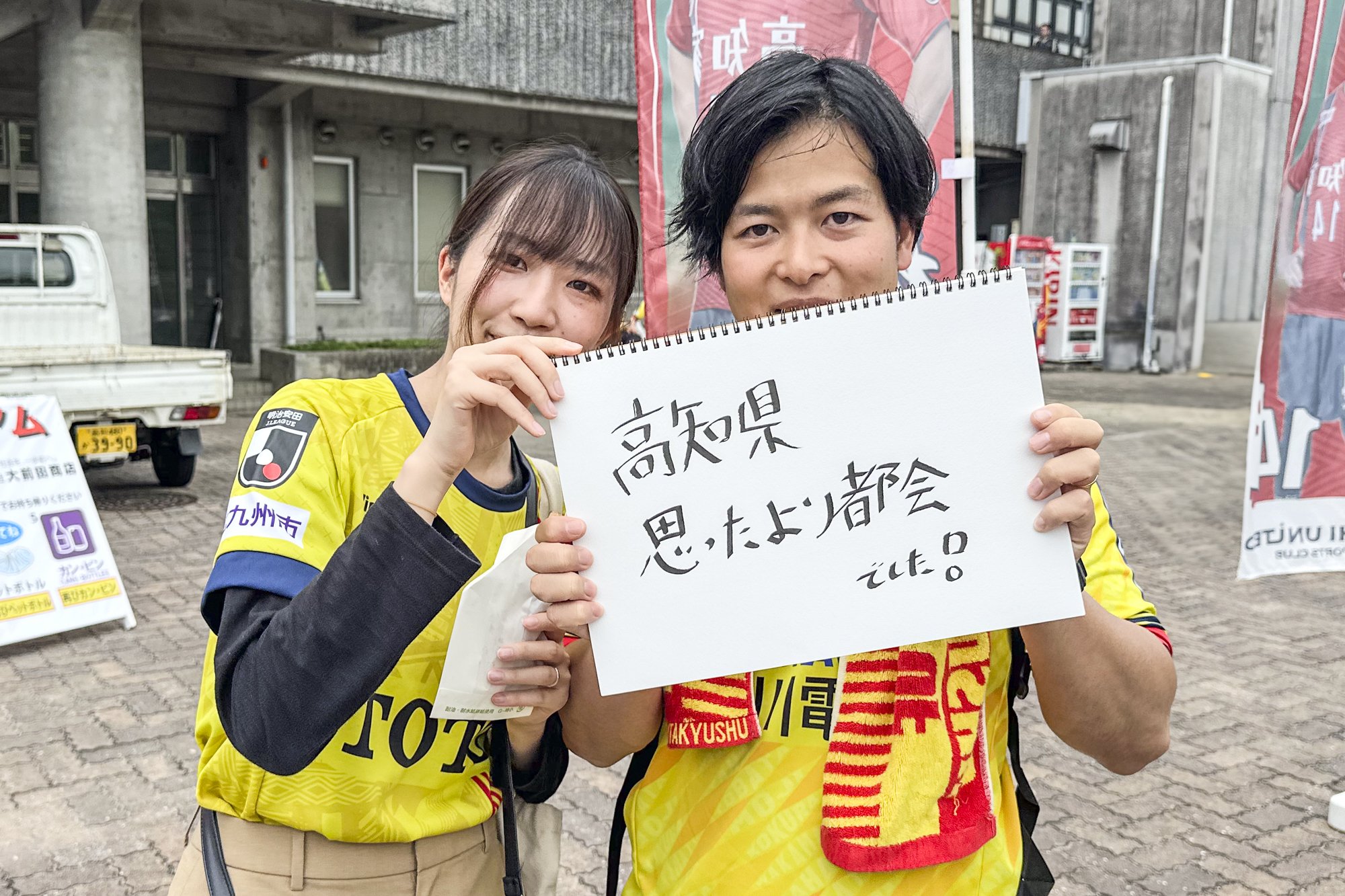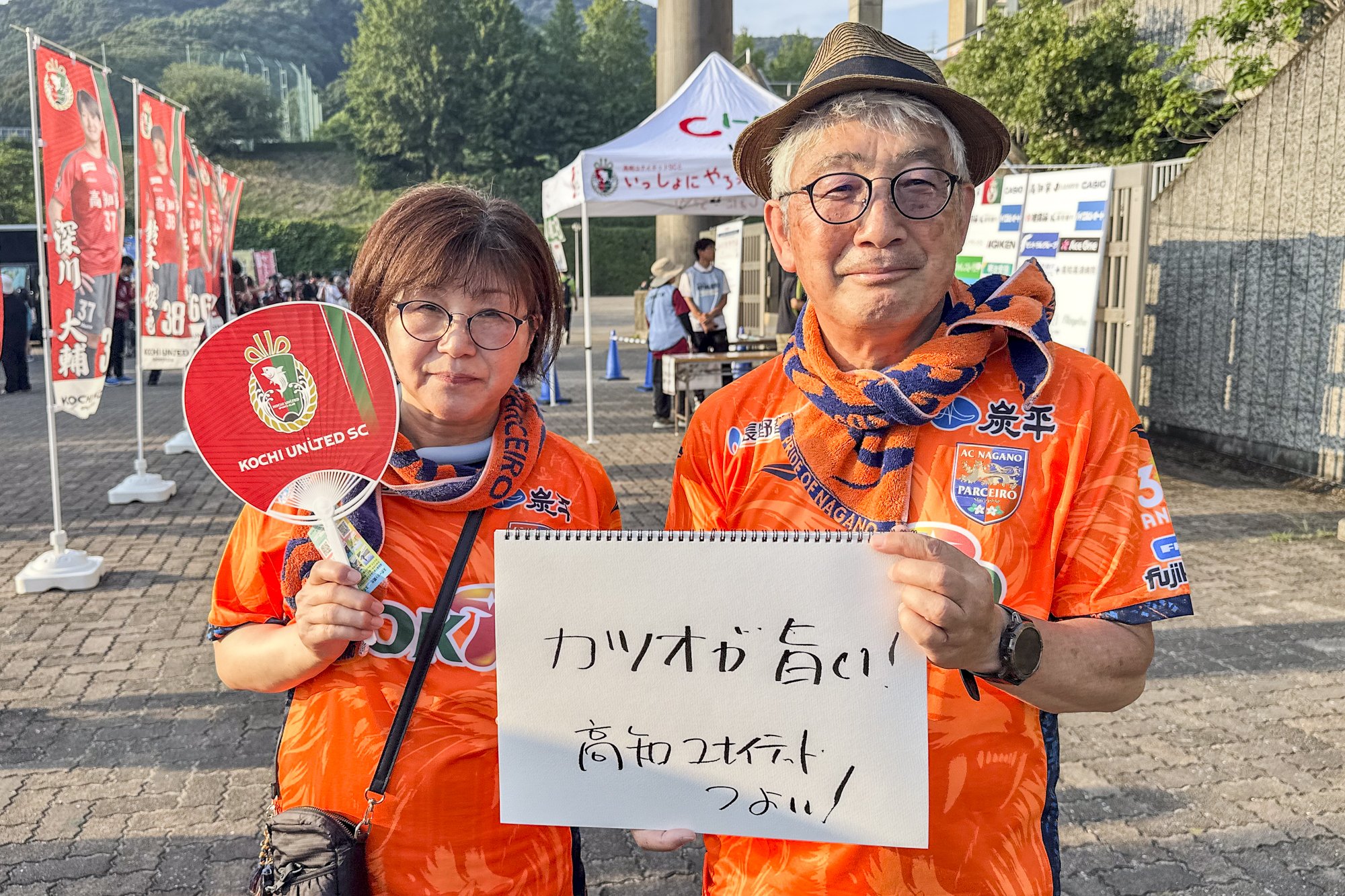 "I'm usually a Kochi United SC supporter, but I'm supporting Kanazawa today! I'm a Kochi citizen, but I love Kochi." (No. 8 Keisuke Oyama's wife from Kochi and Ninomiya's family)