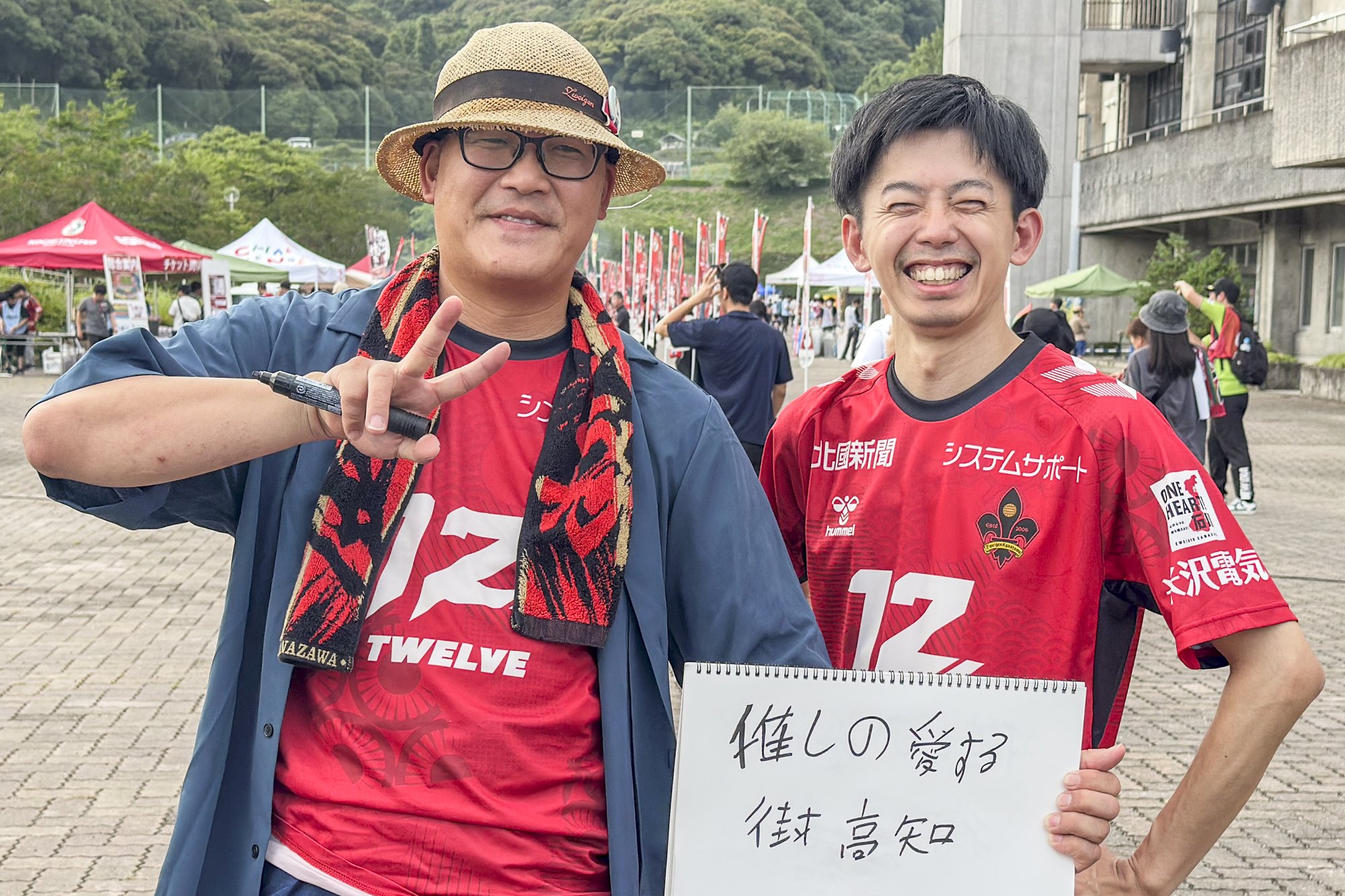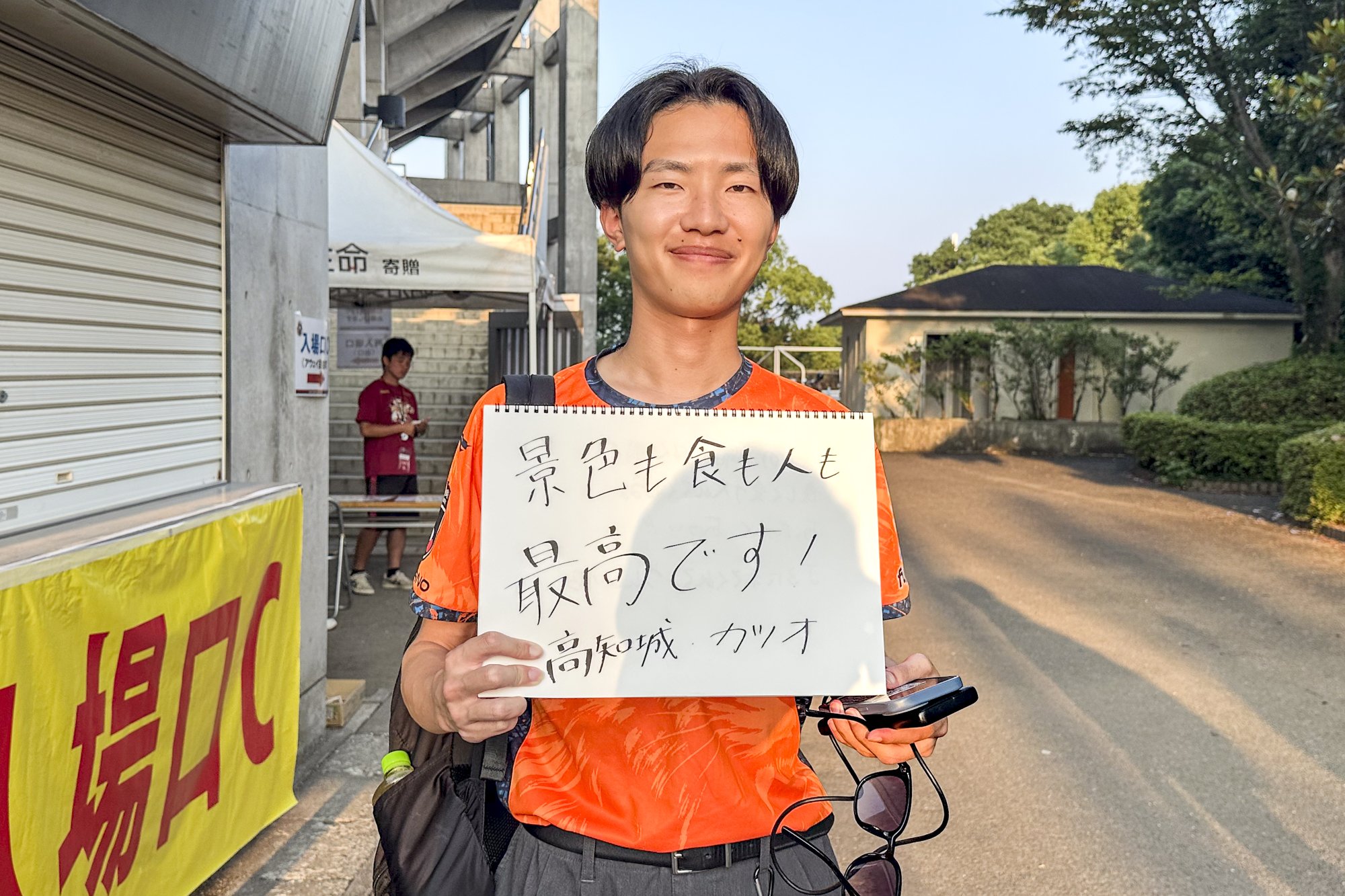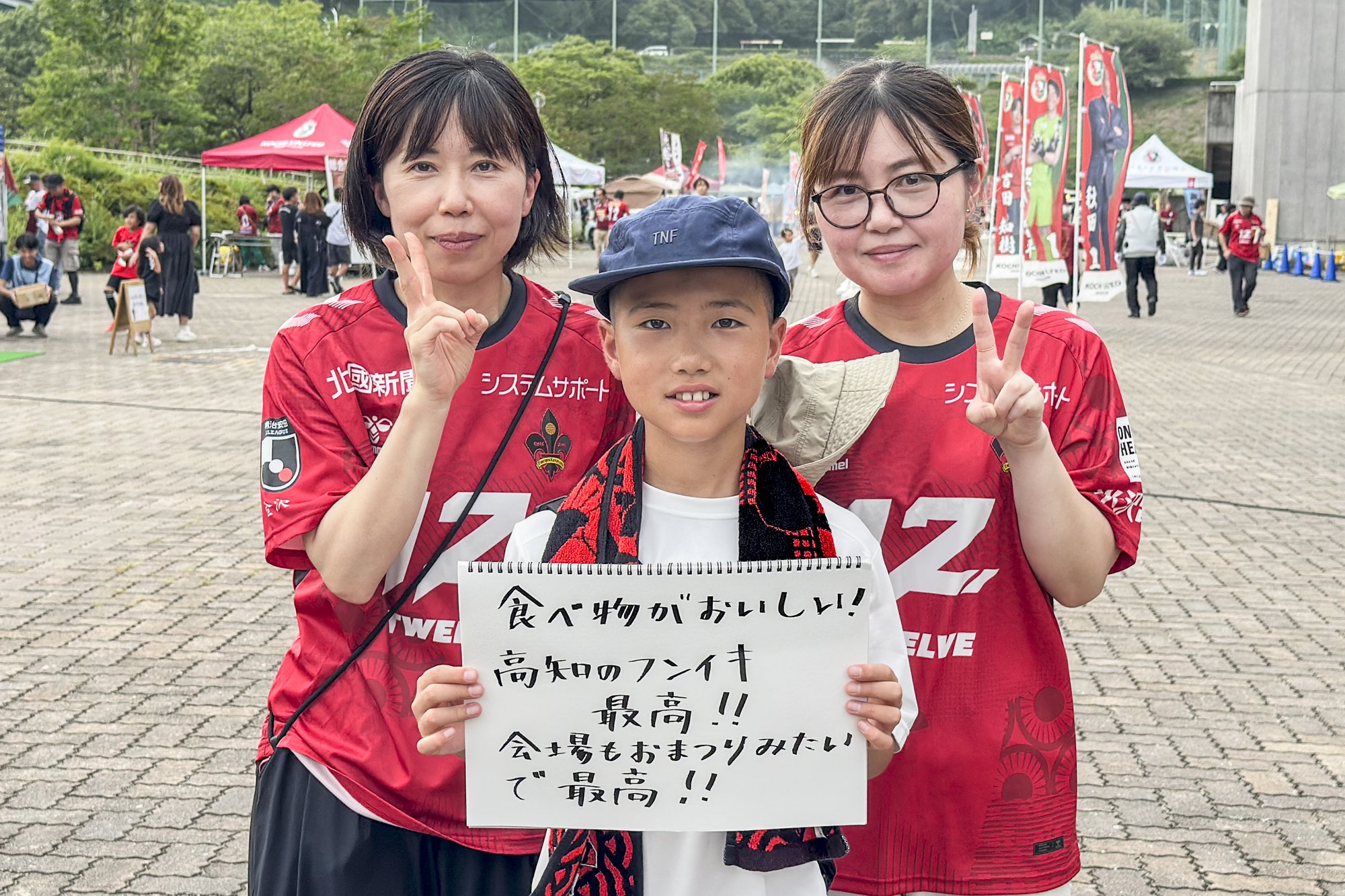"I'm usually a Kochi United SC supporter, but I'm supporting Kanazawa today! I'm a Kochi citizen, but I love Kochi." (No. 8 Keisuke Oyama's wife from Kochi and Ninomiya's family)