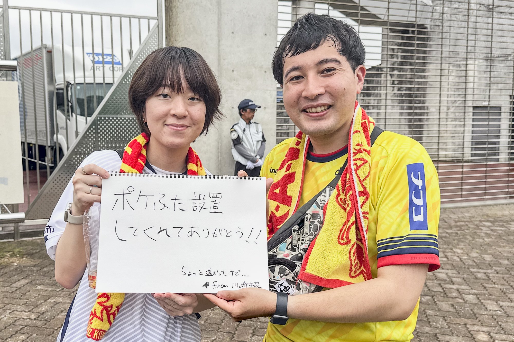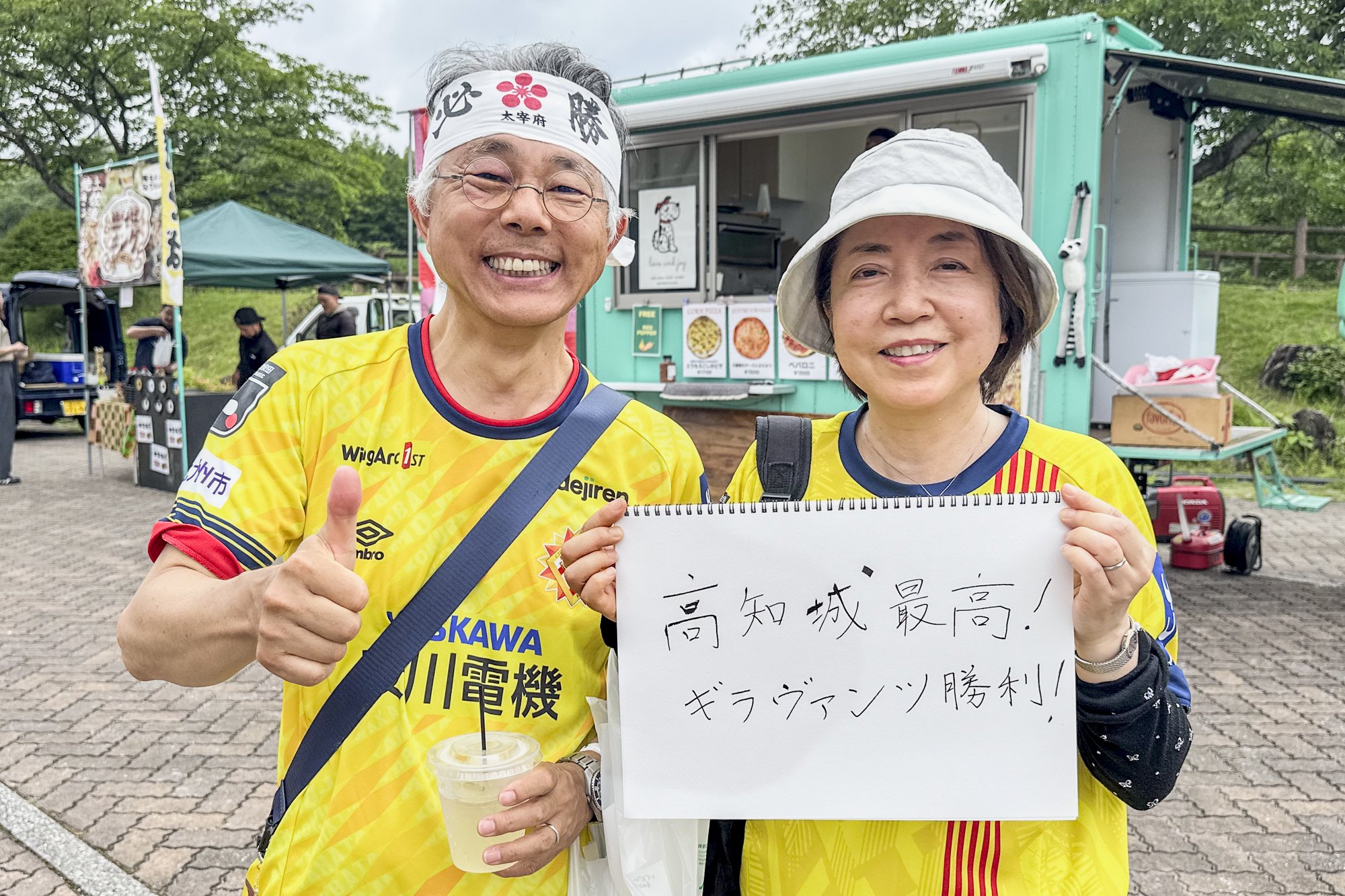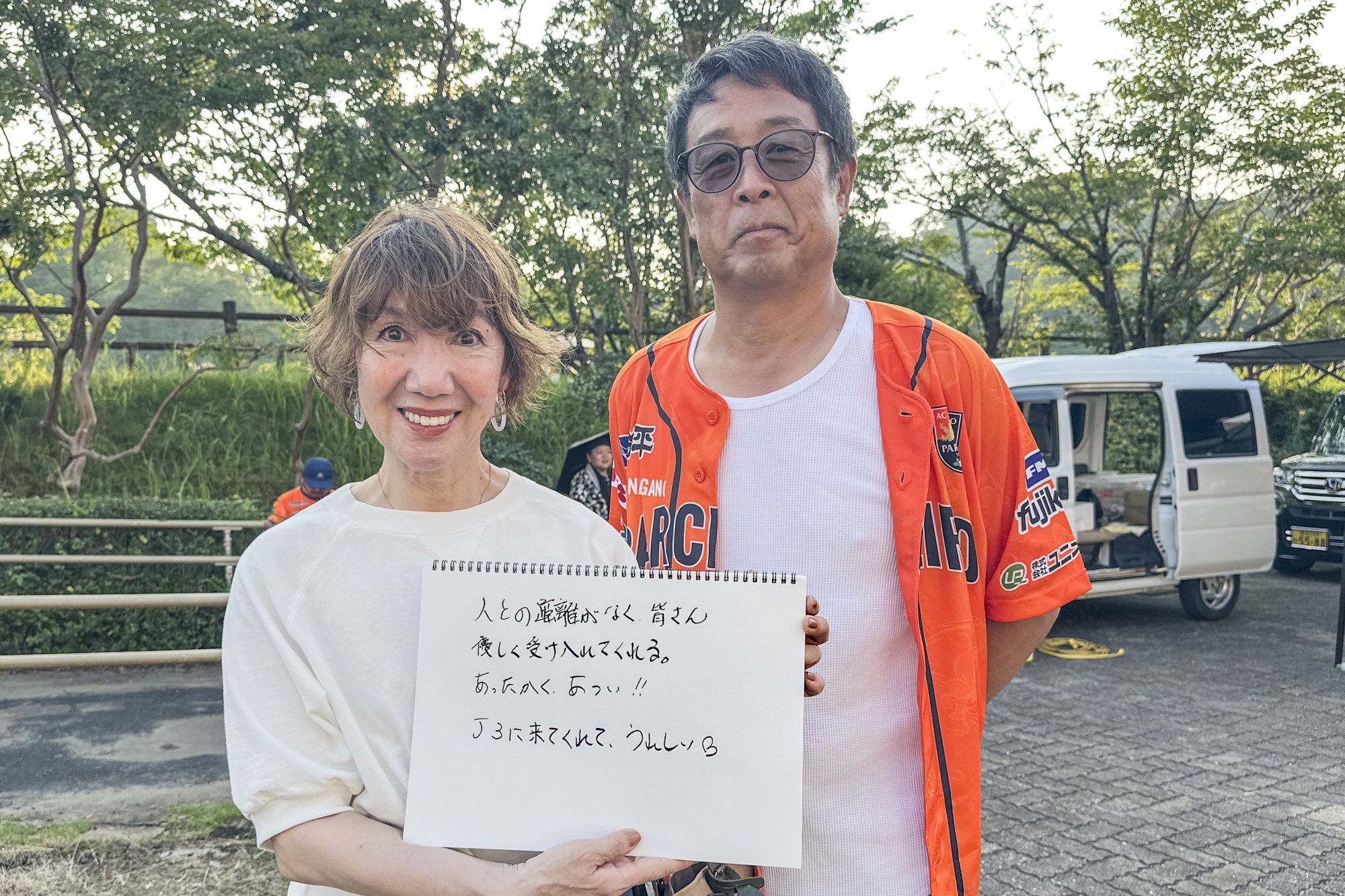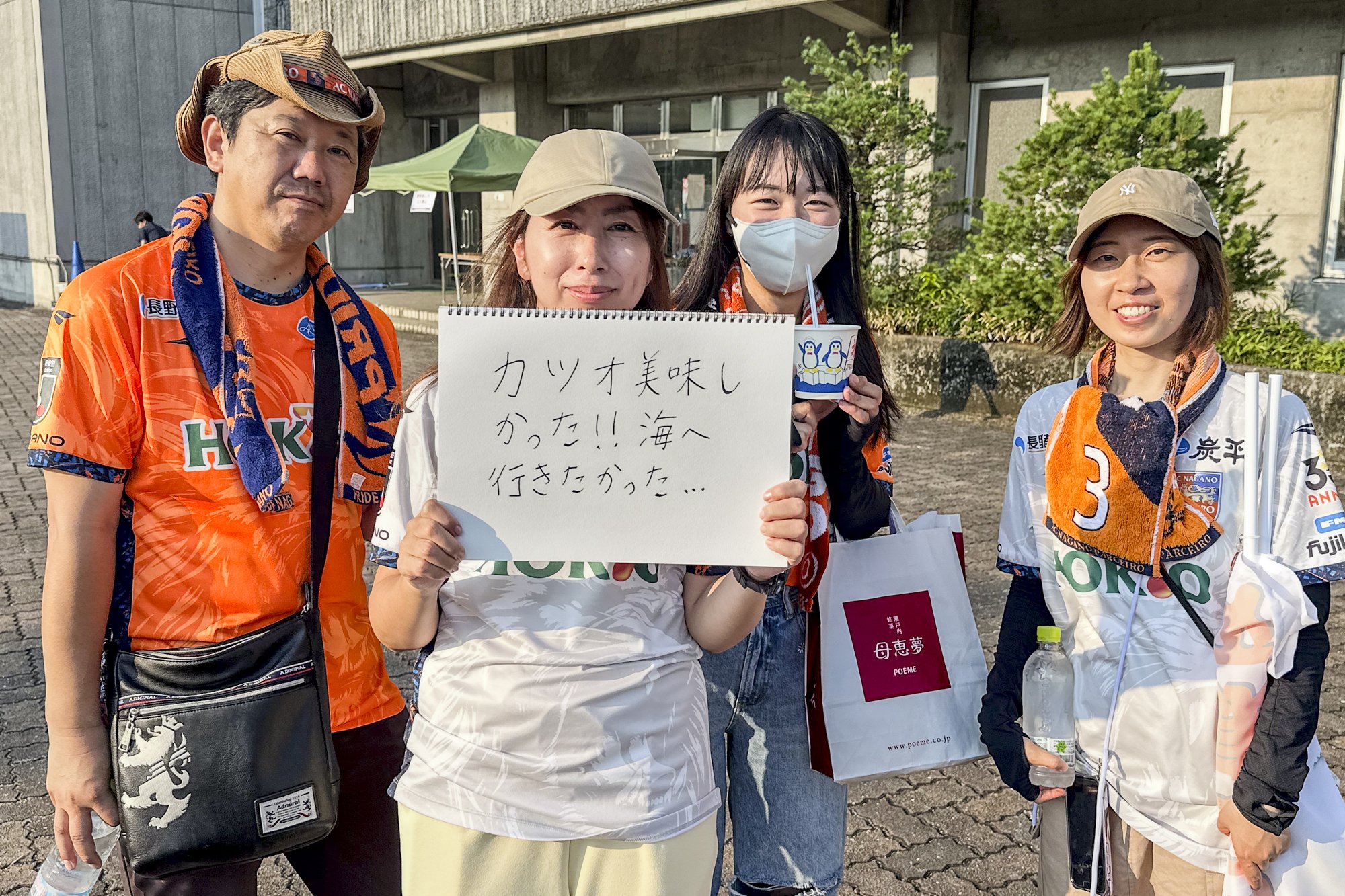 "I'm usually a Kochi United SC supporter, but I'm supporting Kanazawa today! I'm a Kochi citizen, but I love Kochi." (No. 8 Keisuke Oyama's wife from Kochi and Ninomiya's family)