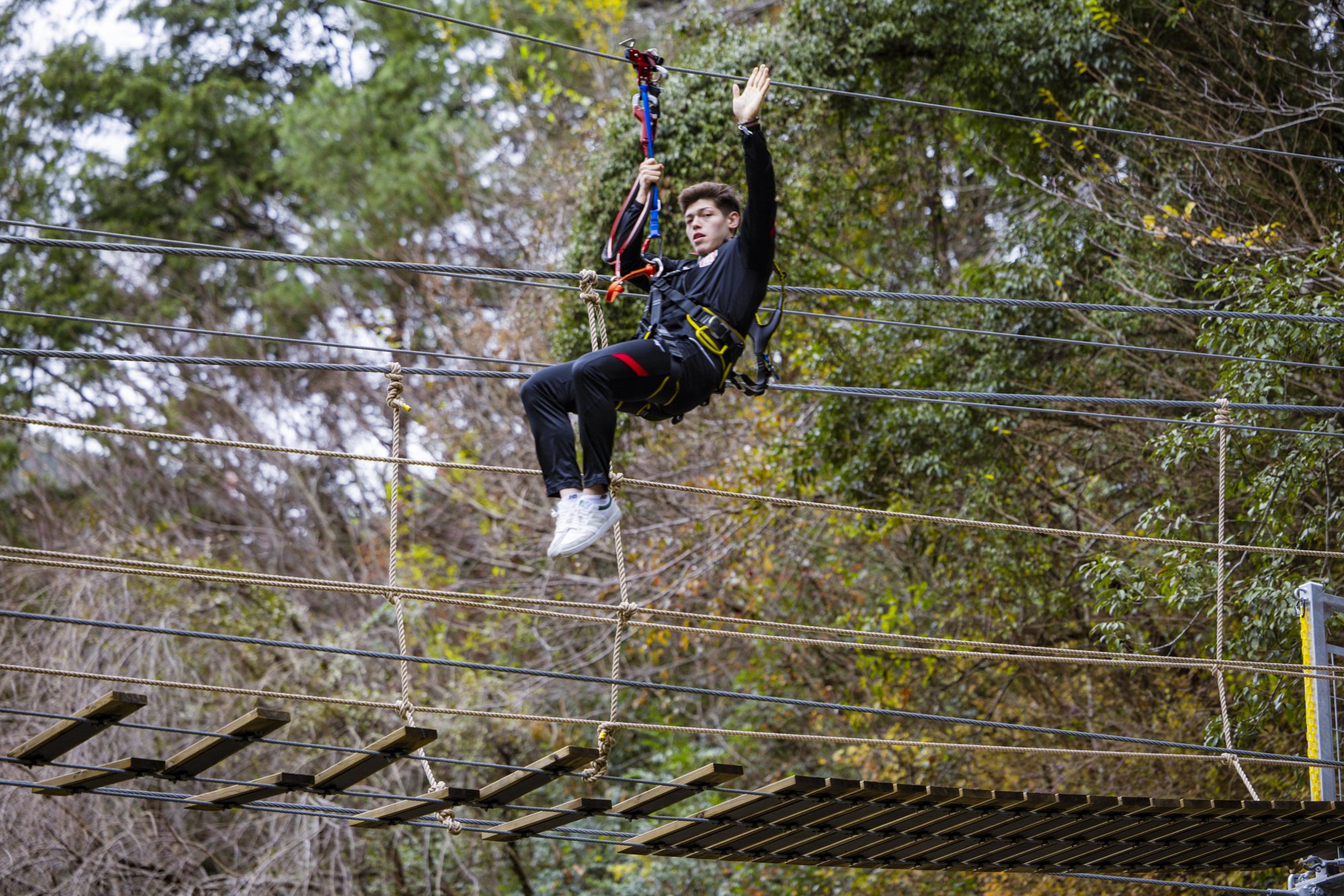 The course is 100 meters long, and the height is 30 meters! Take the course, walk the suspension bridge, and return on the zip line.