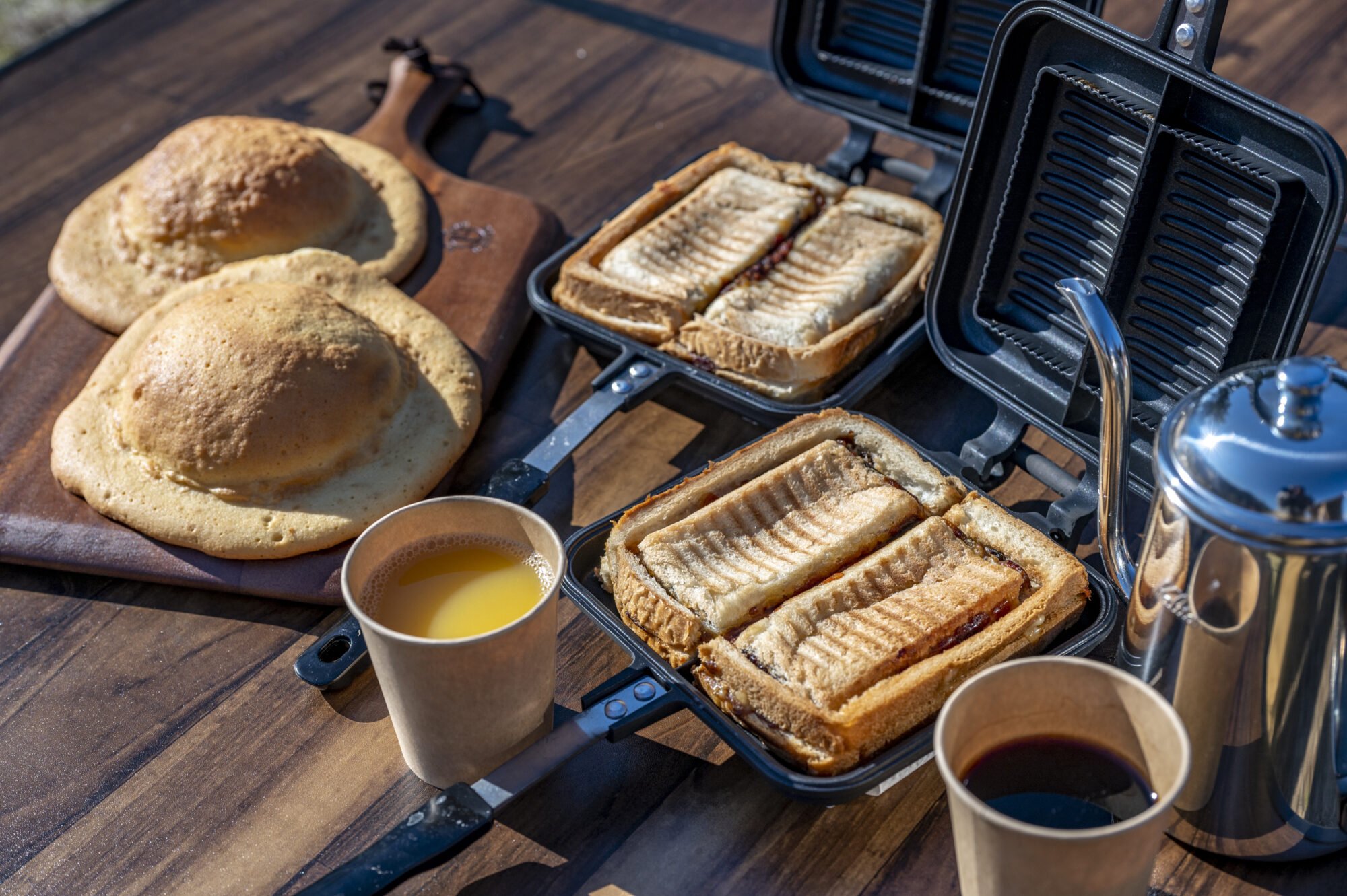 Breakfast is Kochi's specialty "boshi bread" and camping staple "hot sand".