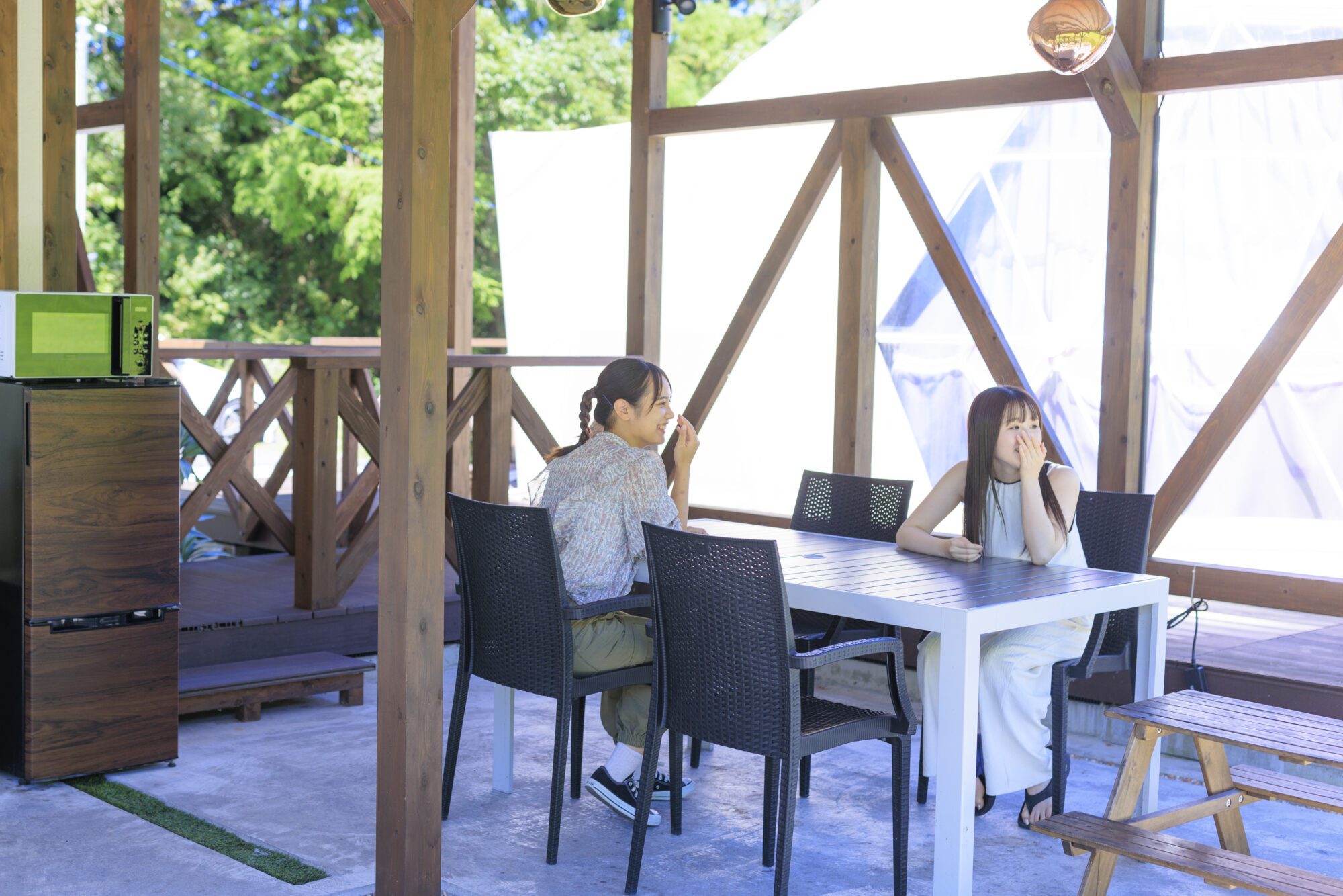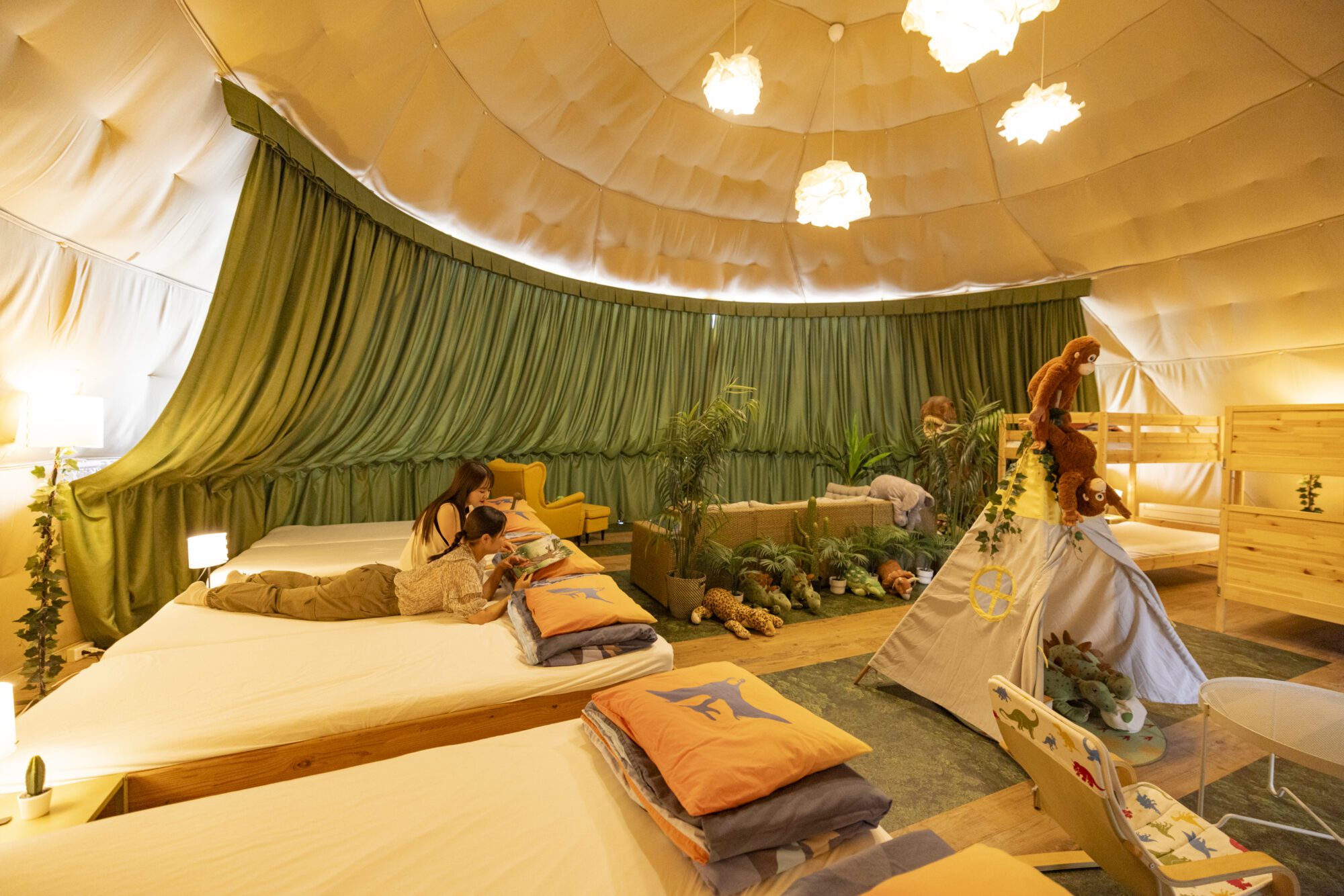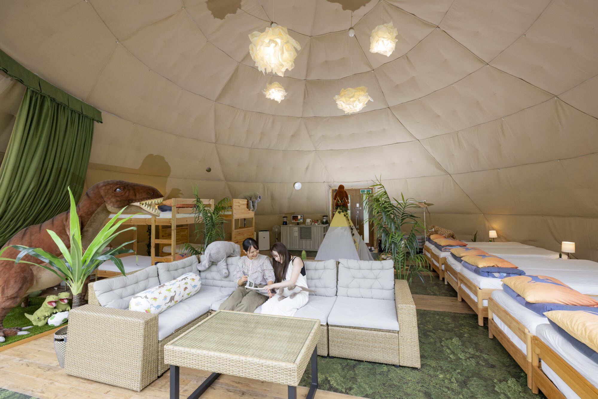 Arrived at the 10m dome tent "Dinosaur" with spacious open-air bath. Two people who get tension in the cute interior! Take a commemorative photo in a resort-like room, read a magazine leisurely and relax to heal the fatigue of your drive.
