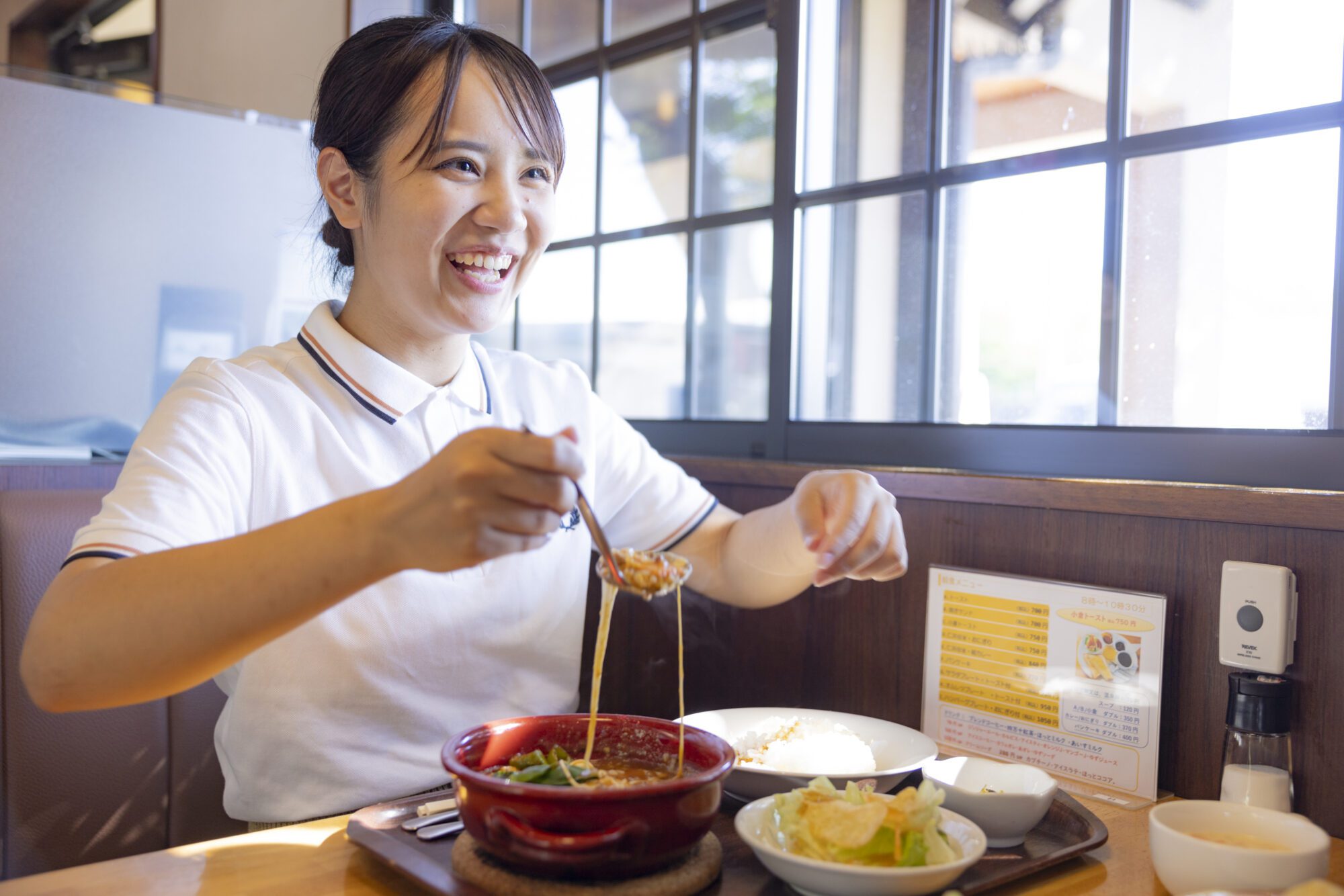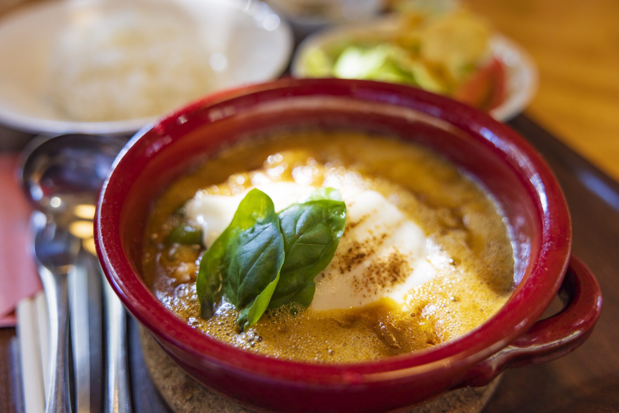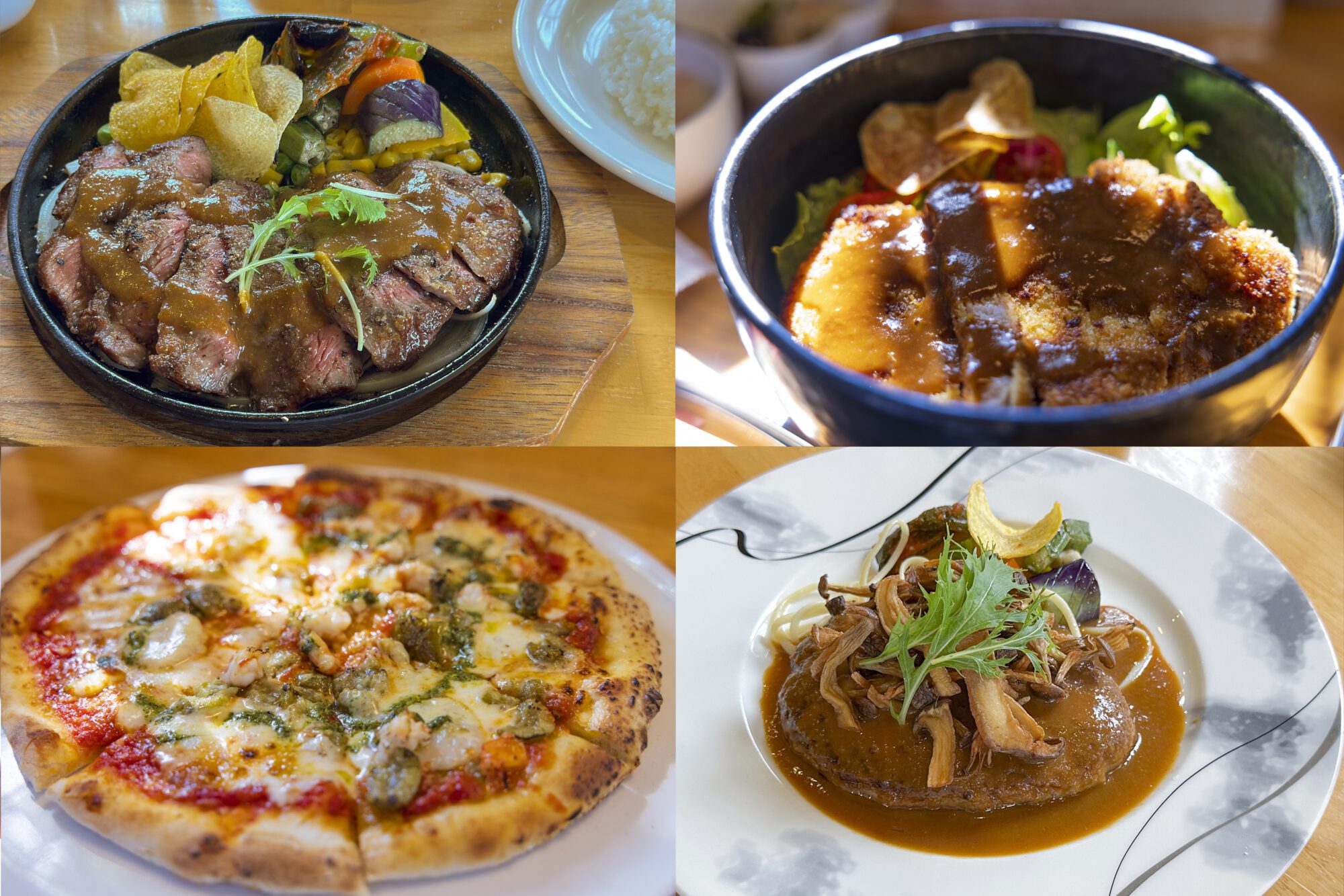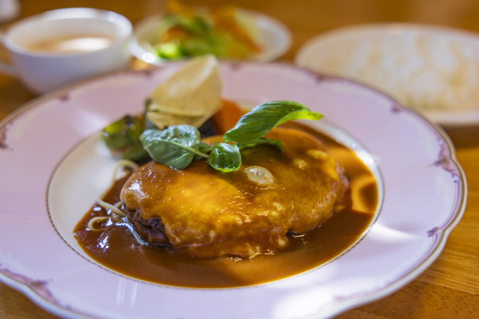 The two people received "Mozzalera cheese baked hamburger steak" and "Mozzalera cheese and clay pot keema-style curry". The signboard menu hamburger uses Shimanto Japanese black beef and Shimanto pork purchased every morning, and the sauce is made of demigrass sauce carefully cooked with beef thread meat from Shimanto town. In addition, all rice is Niida rice from Shimanto-cho, and eggs are also particular about highland eggs from Shimanto-cho, so you can enjoy a high-quality taste in a calm shop.